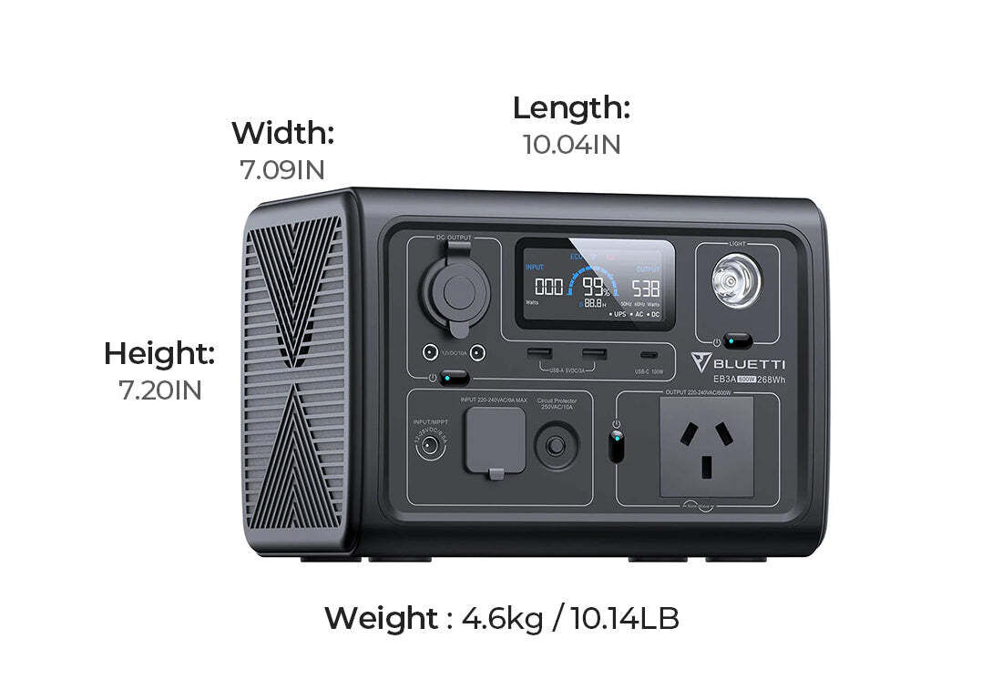 The Bluetti EB3A is compact enough, but you can count on it with big jobs. Whether it be small blender, mini rice cooker or small refrigerator, EB3A gets you all covered thanks to the 600W AC Pure Sine Wave Inverter (1200W surge) and an impressive 268Wh capacity.