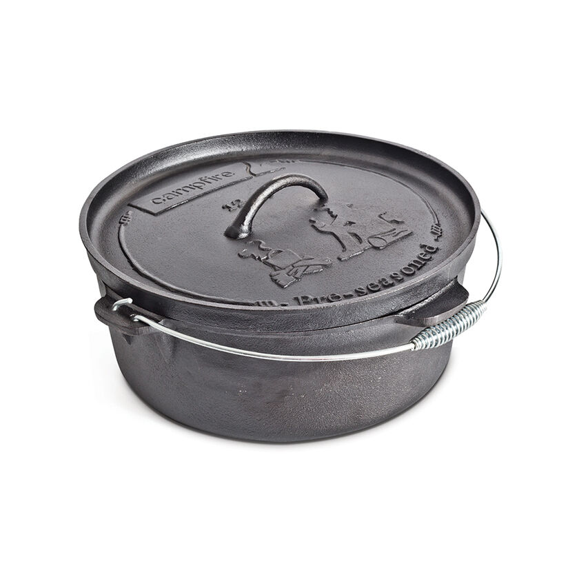 The Campfire 9 Quart Cast Iron Camp Oven is the perfect size for all your cook ups. Made from solid cast iron and pre-seasoned ready to use for that perfect camp cook-up.