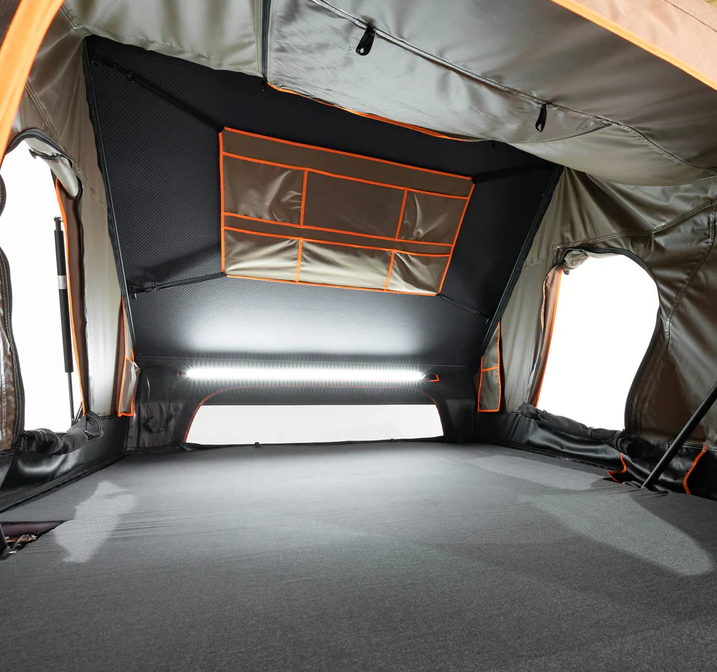 Take a closer look and you will see even more thoughtful and creative features. This includes an incredibly supportive composite MDI memory-foam mattress, an integrated LED strip that can be mounted at different points in the tent as well as externally using the built-in sailtracks, moveable storage pockets, and much more.