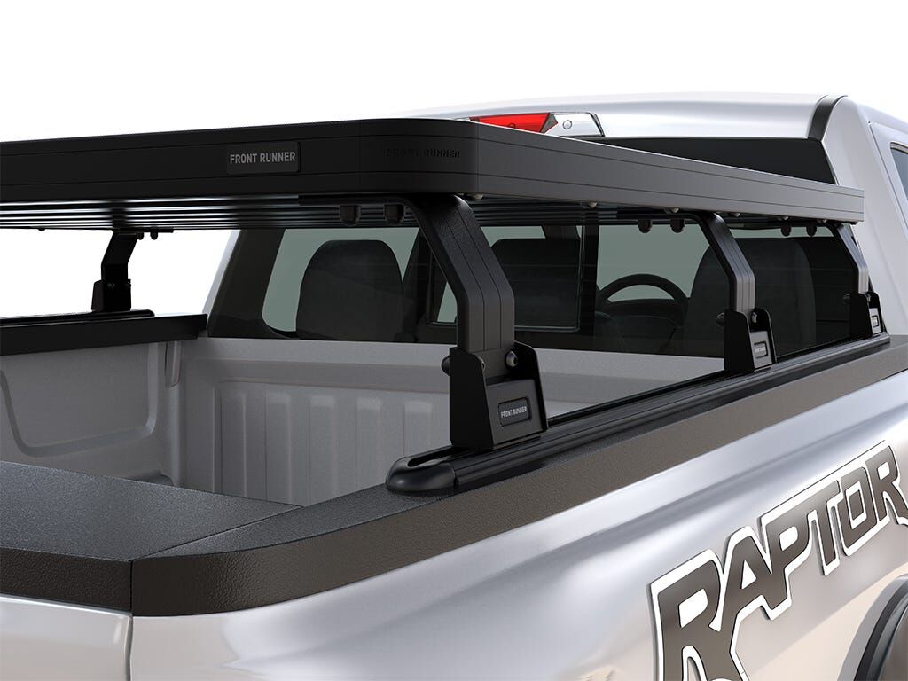 This kit creates a full-size rack that sits above your Ford F-150 Raptor truck bed. This Slimline II cargo carrying rack kit contains the Slimline II tray (1575mm x 1358mm), 2 Tracks, and 6 Pickup Truck Bed Universal Legs that fit into the Tracks.
