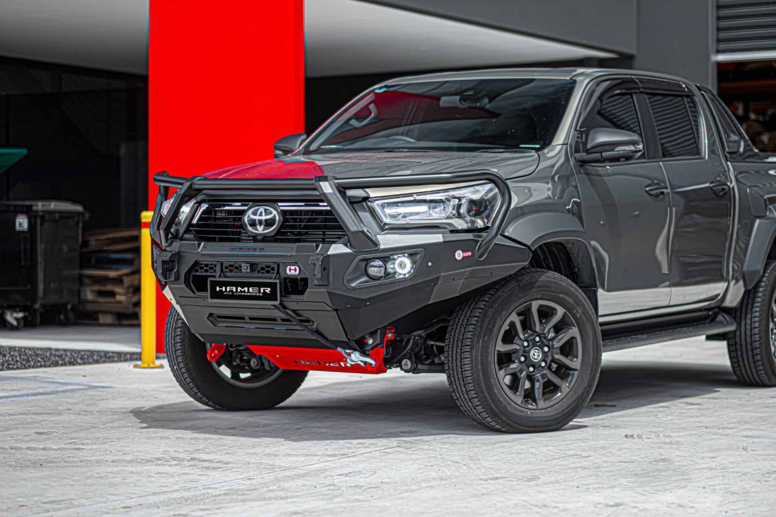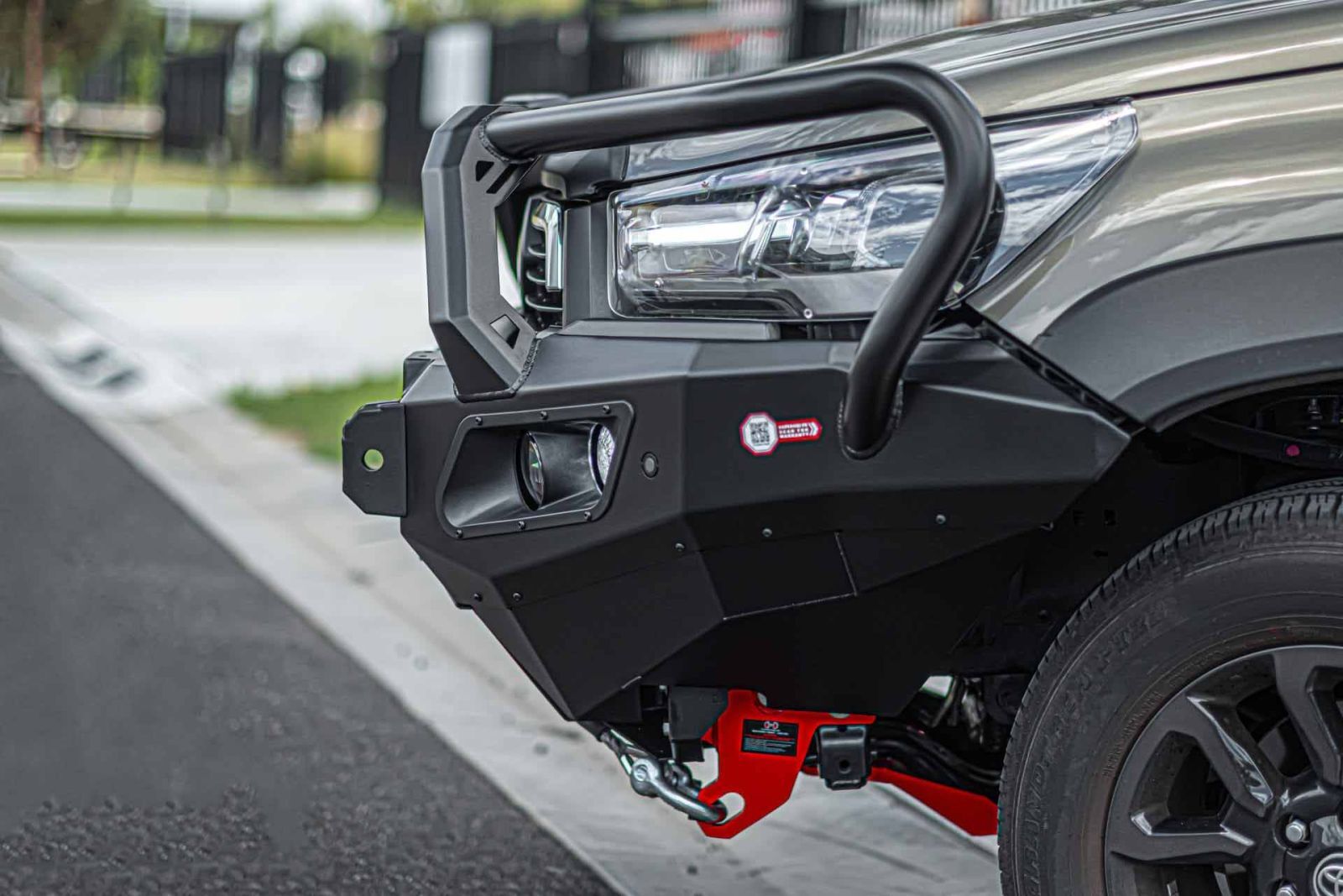 Designed in Australia to meet demanding conditions, the King Series Plus features a strong loop-style frame that extends protective coverage higher across the front of the vehicle. Constructed from premium 3 mm high-grade steel plate, it replaces the factory bumper entirely, improving structural strength, approach angles, and impact resistance. Its streamlined integration ensures the vehicle maintains a clean, purposeful appearance while boosting overall resilience.