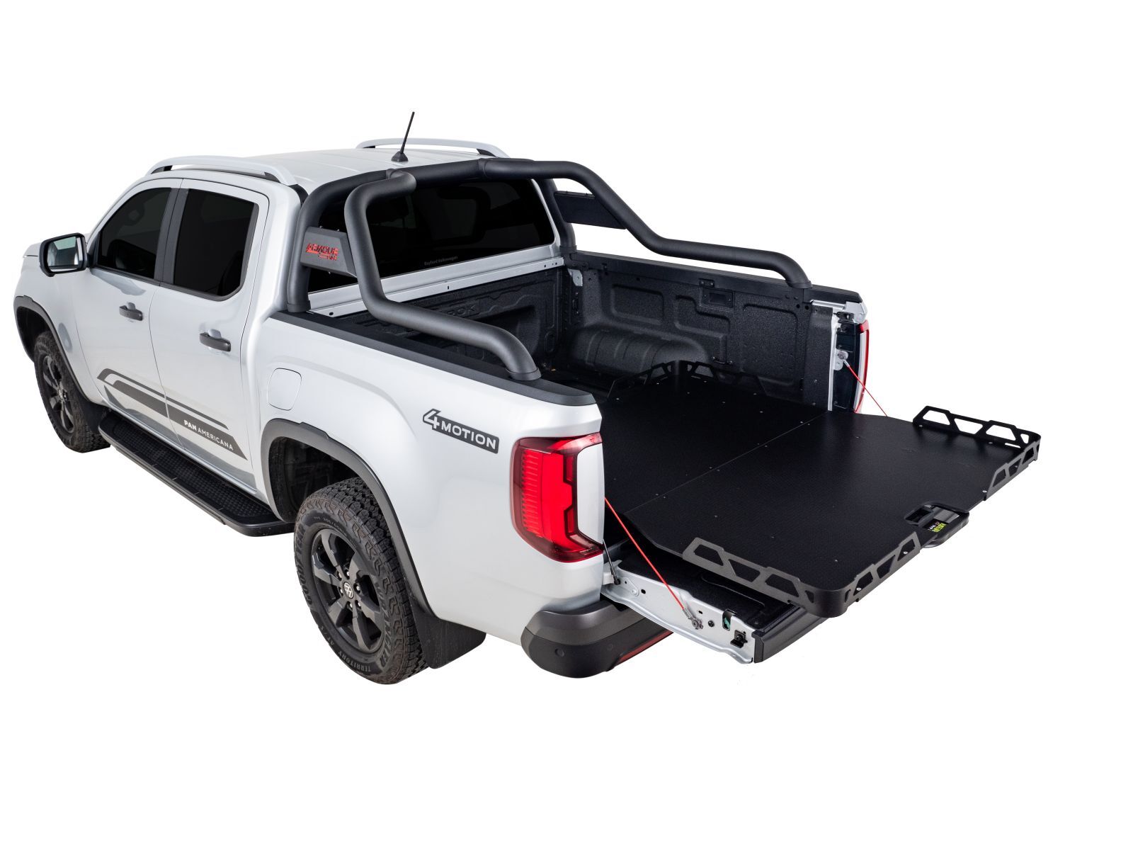 The ultimate solution for easy access and management of your vehicle's tub. The HSP Load Slide is a purpose-built, retractable slide tray featuring a heavy-duty steel frame and a custom-cut platform that contours perfectly to your vehicle, wrapping around the wheel arches for a seamless fit. Operated via a simple handle with multiple latching positions and a dedicated side rail, it’s designed to give you better control over your cargo. Compatible with canopies, it’s the ideal upgrade for convenience, durability, and functionality.