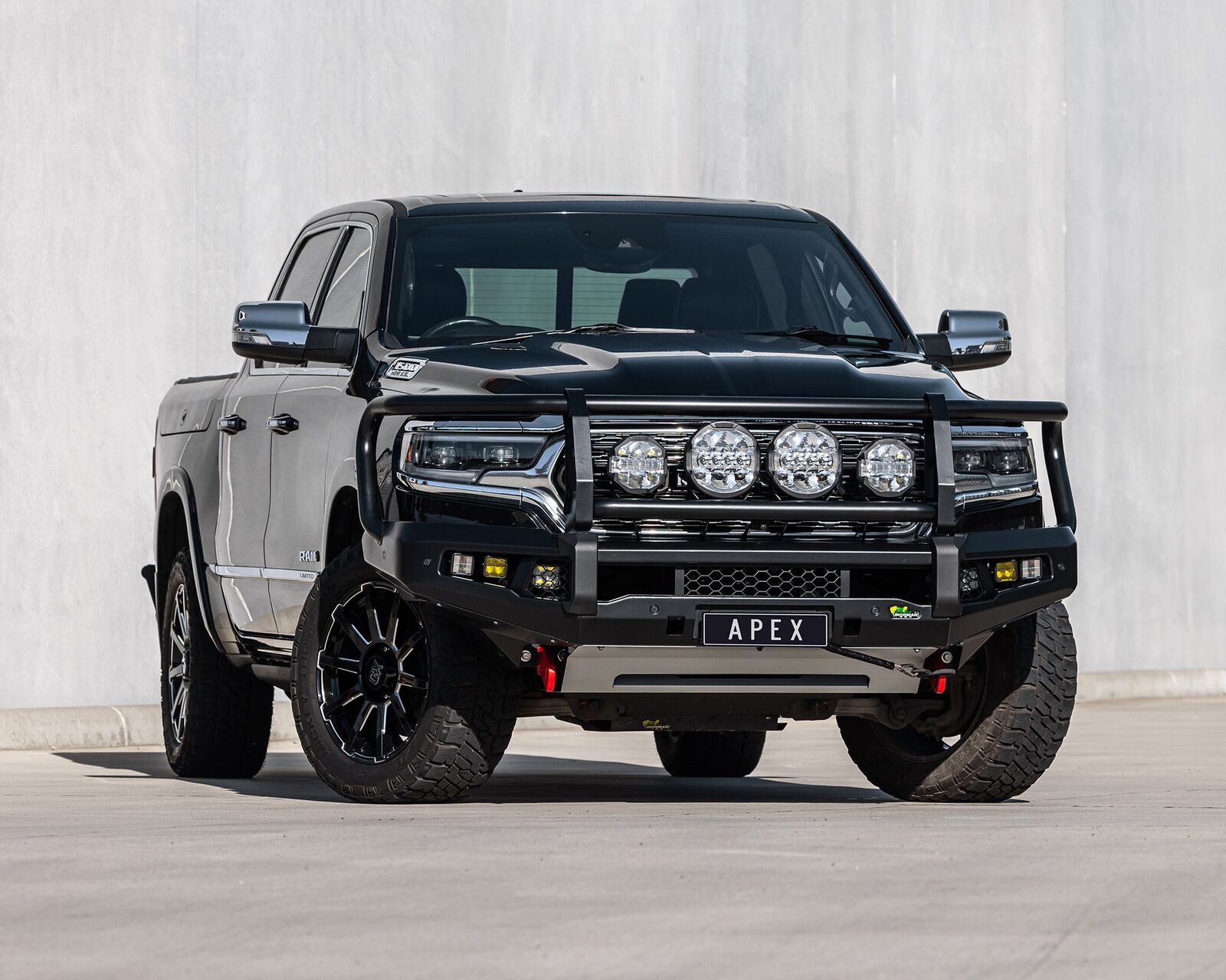 Designed with off-road recovery in mind, the Apex Bull Bar supports a wide range of low-mount winches and includes integrated recovery points. These features make it a dependable choice for remote travel and challenging terrain.