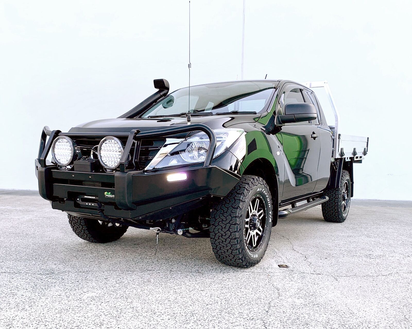 The Commercial Bull Bar supports basic accessory fitment, including driving lights and antennas, making it a practical solution for work vehicles that require essential upgrades without added complexity.