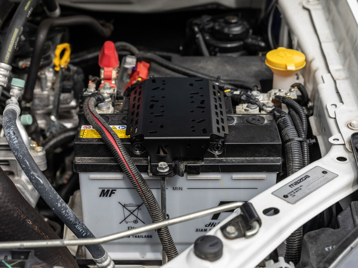 Kaon's Battery Fuse Bracket makes mounting common fuses simple, all while bolting straight over the factory Isuzu and Mazda Factory battery clamp.