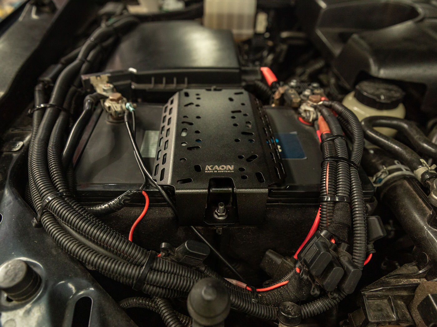 Kaon's Battery Fuse Bracket makes mounting common fuses simple, all while bolting straight over the factory Nissan battery clamp.