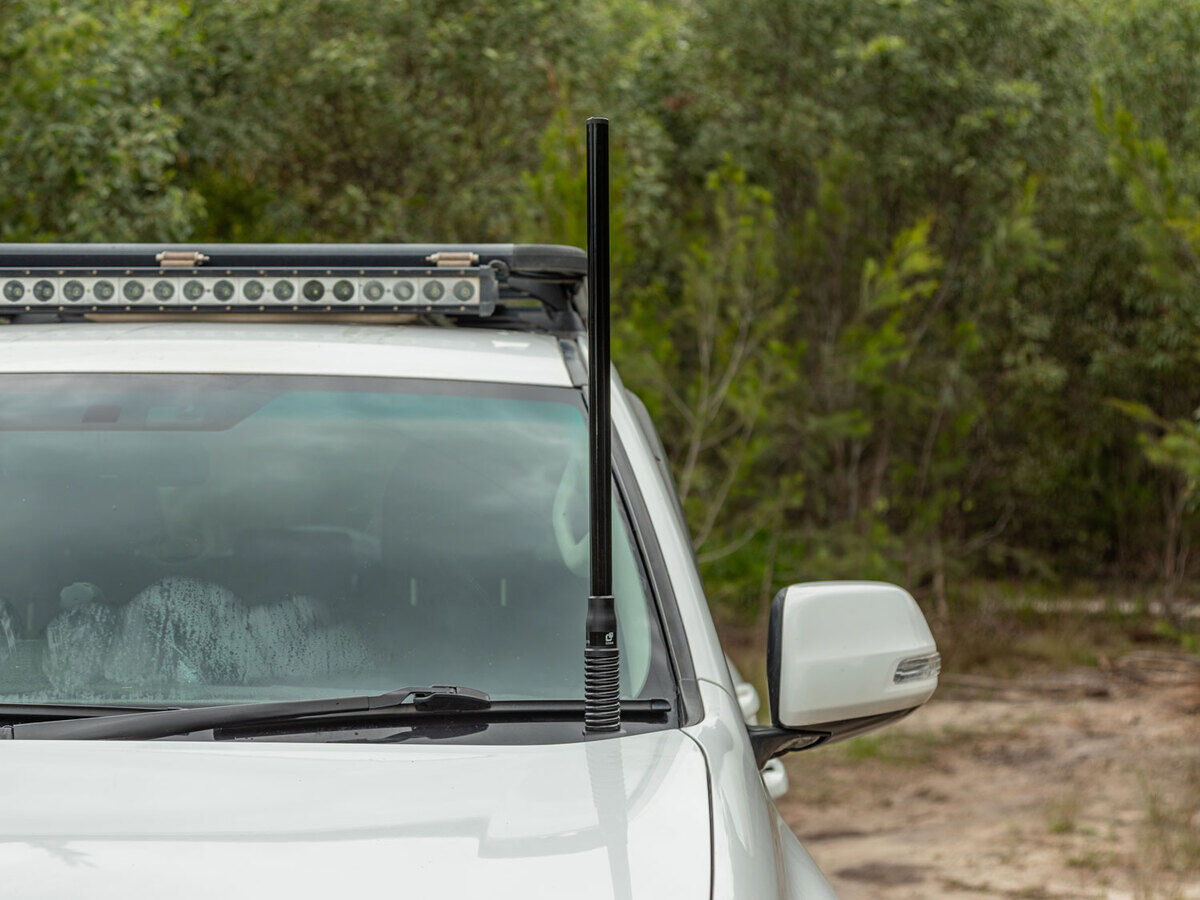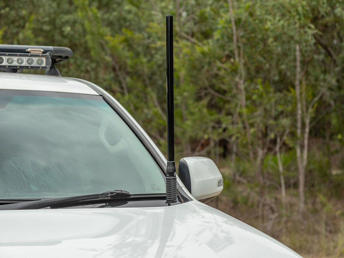 Please note antenna, aerials or any accessories pictured other than the Bonnet Hinge Mount are not included.