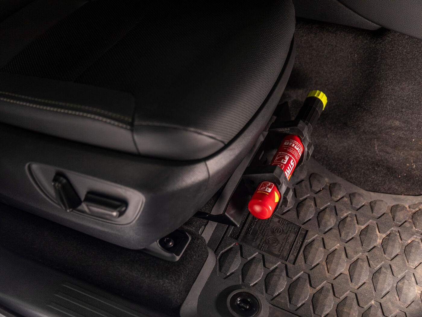 We all know it’s a good idea to travel with a fire extinguisher, but it’s tricky to work out how to store one so you have immediate access in an emergency. Front Seat Fire Extinguisher mounting brackets provide a safe and secure location that is right at your feet, saving precious time in the event something goes wrong.