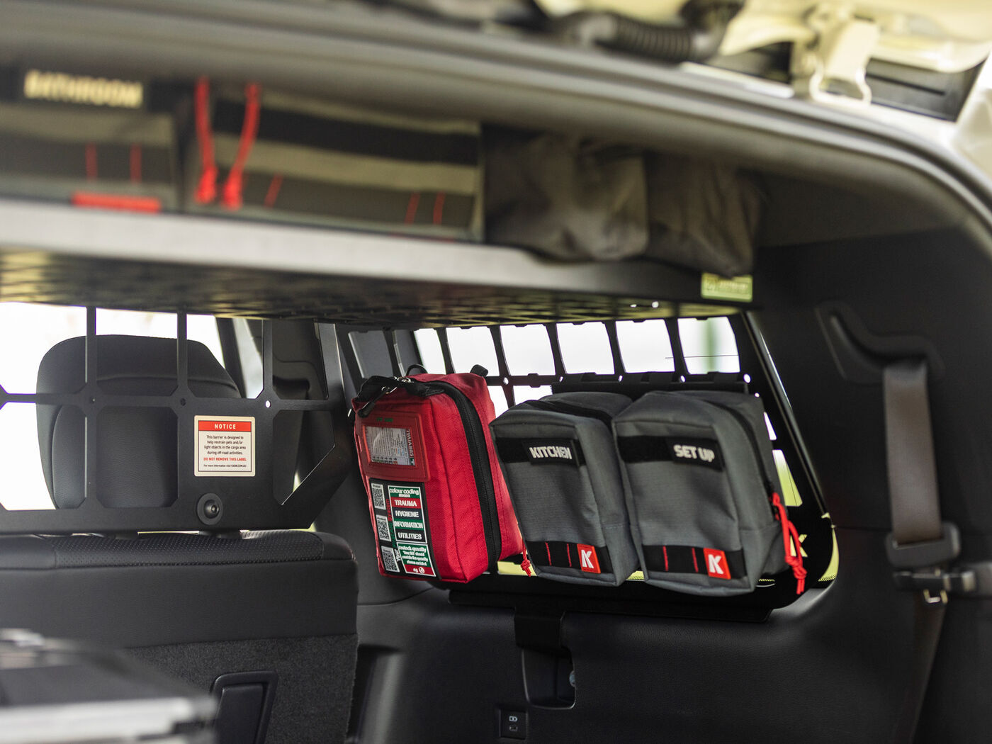 Passengers should not ride in the third-row with the Molle Panels installed.