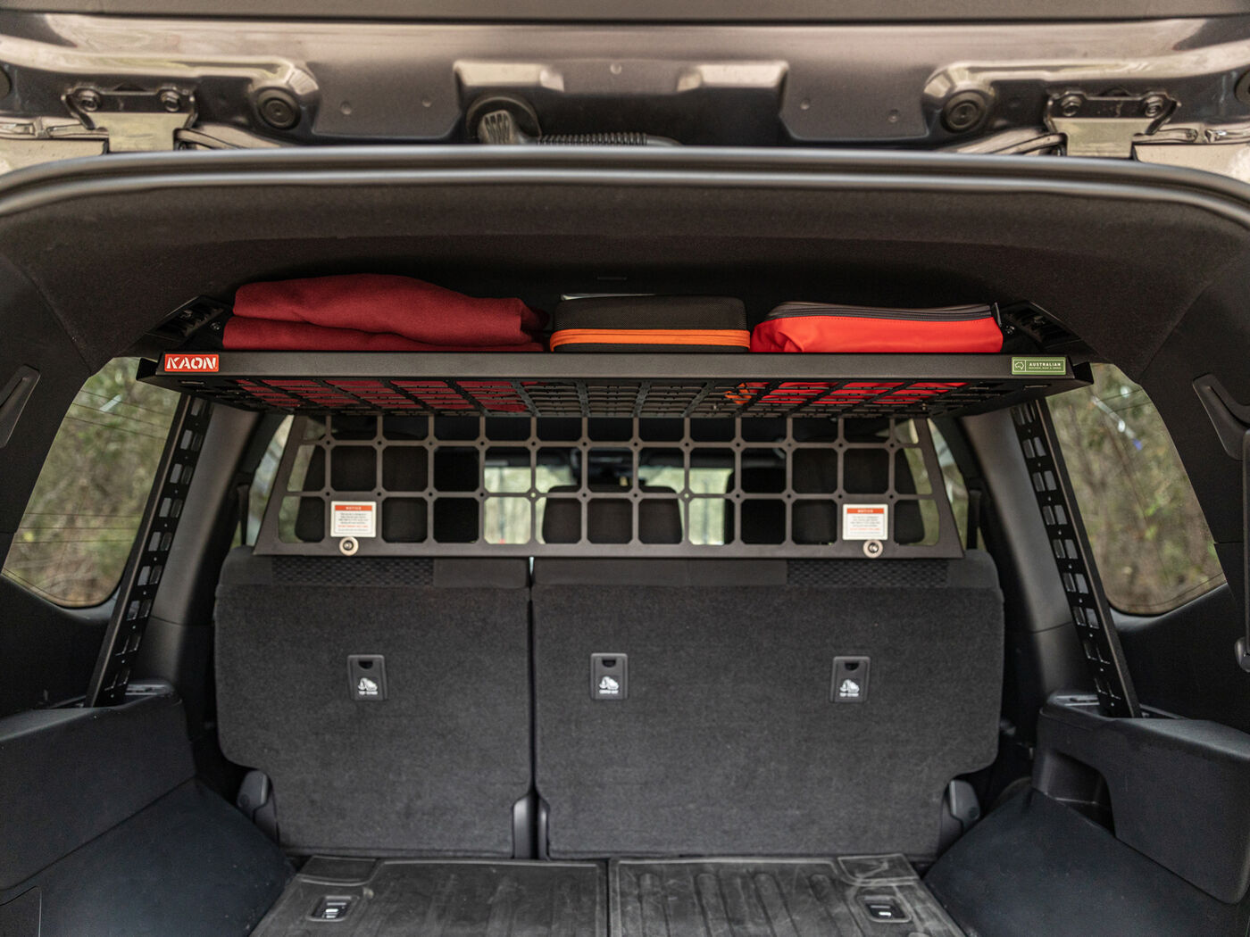 The Standalone Rear Roof Shelf and Light Cargo Barrier bundle helps you get organised, with a secure place to store all the smaller bits and pieces, and a barrier to keep pets and cargo from moving around that doubles as an accessory mounting space. Intuitive DIY installation and removal means your setup can be easily adjusted, whether it’s between trips to suit day-to-day life, or as a growing family with evolving needs.