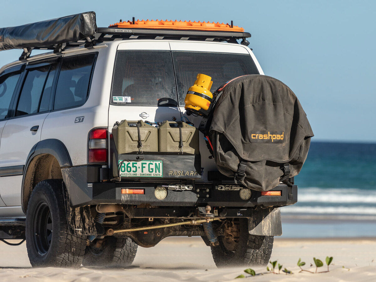 Create a mount to suit your setup. Fixed to the Out-Back Spare Tyre Mount, adjust it up and down, in and out. Run it left, right or even above your spare tyre – with the Out-Back Gas Bottle Mount, it's all up to you.