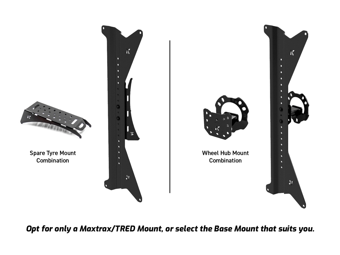 First, pick your mounting base: the Out-Back Spare Tyre Mount or Out-Back Spare Wheel Hub Mount. You can choose to run it centre, left, right or even above your spare tyre.