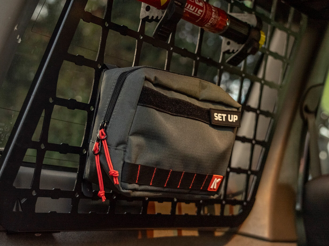 Kaon have spent enough time on the road to know what doesn’t work – loose bags, awkward molle straps, and bags that stay put when you really need them in hand. That’s why we reimagined the system entirely. Designed to mount fast, hold firm, and rip free in an instant, these pouches use a rigid Velcro backing for secure attachment – without sag, studs, or fuss.
