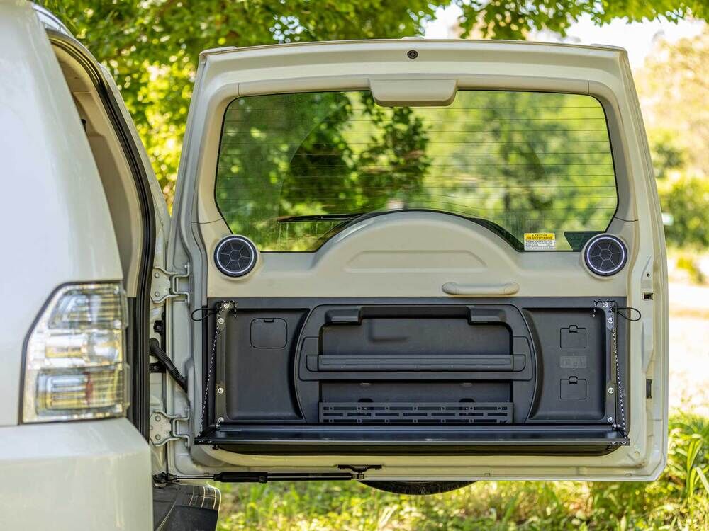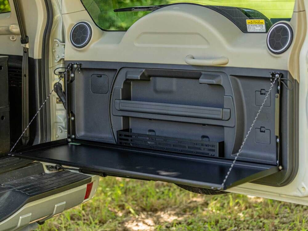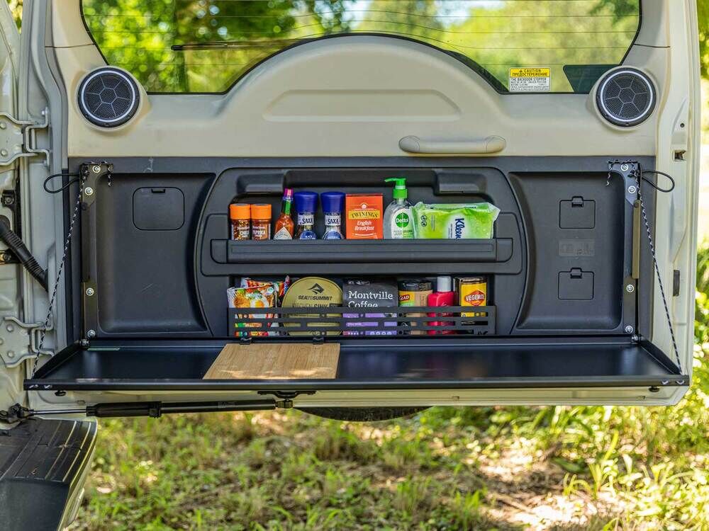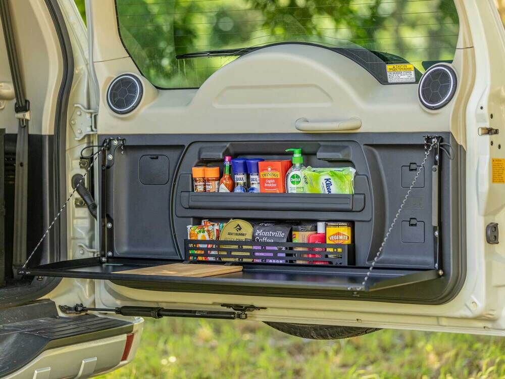 The Rear Door Drop Down Table and Centre Cage makes for the ultimate work and prep surface for life on the road – whether it’s a roadside lunch, a little email catchup, or the ultimate drinks bar at the campsite.