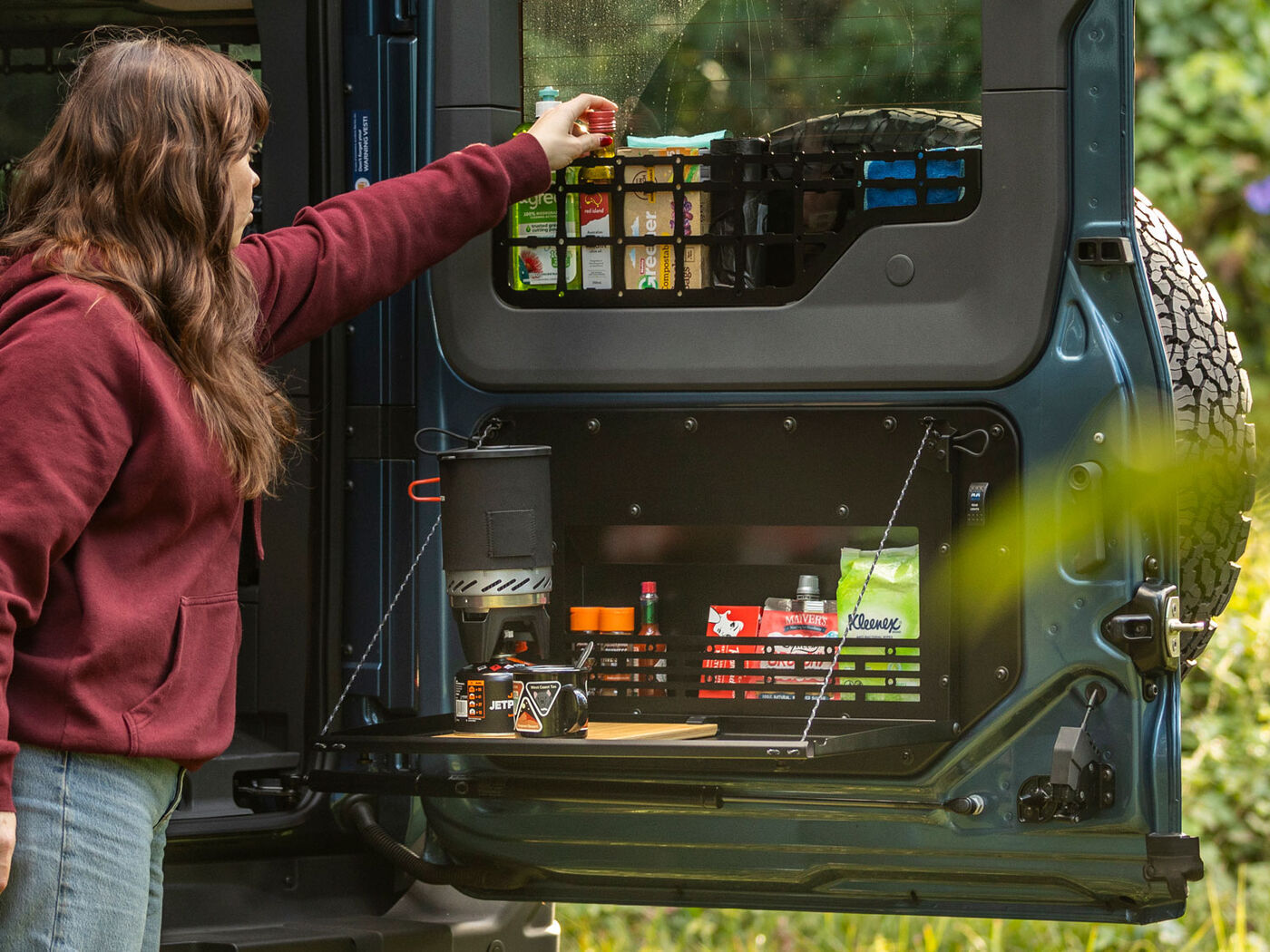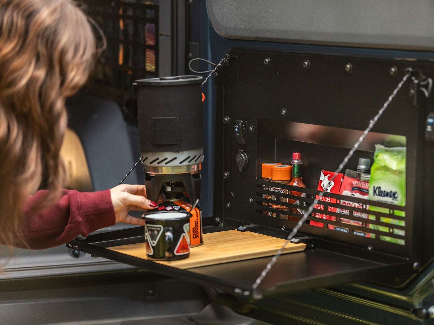 The easiest work and prep surface for life on the road – whether it’s a roadside lunch, a little email catch up, or the ultimate drinks bar at the campsite.