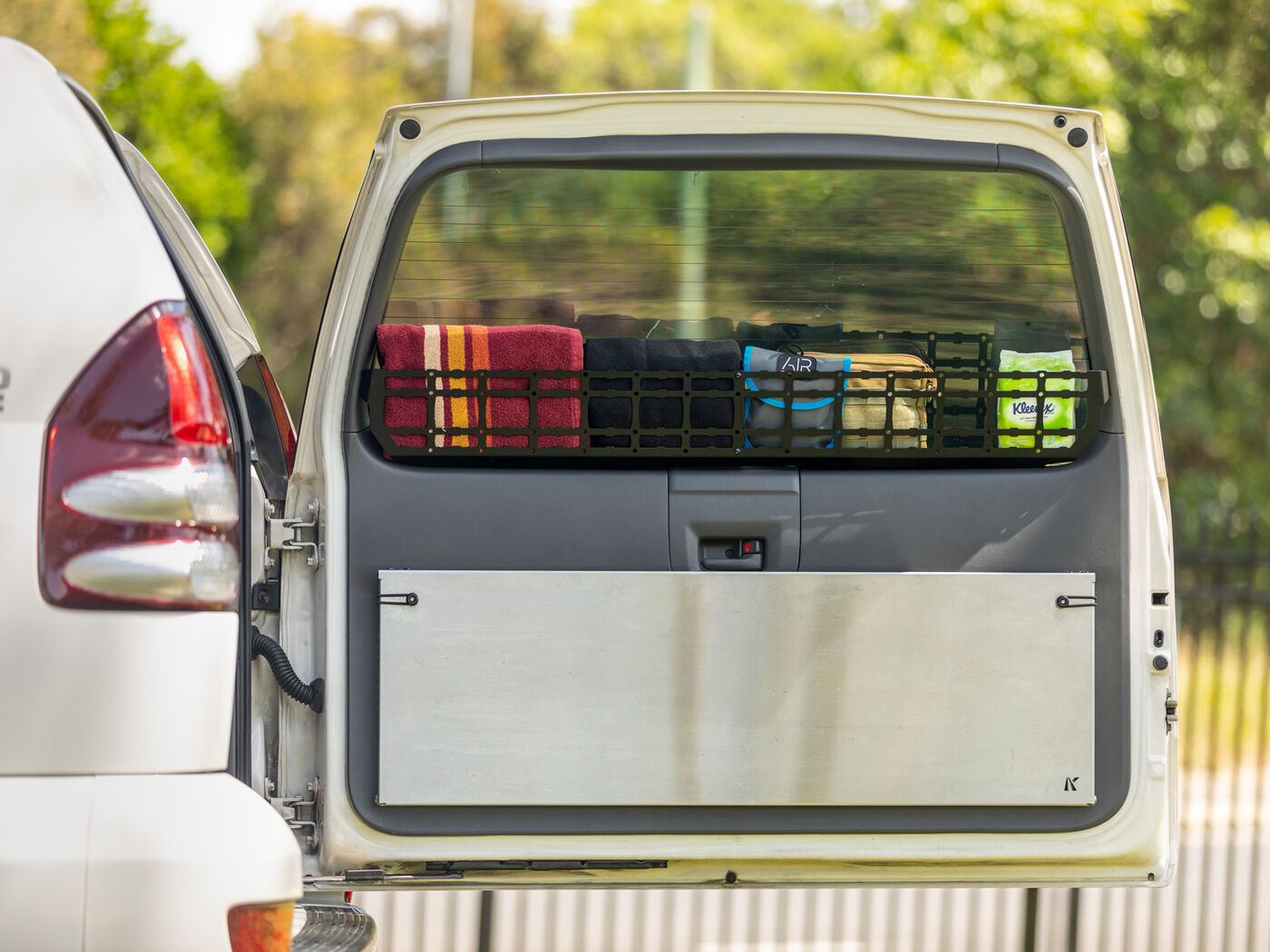 Maximise storage space on your rear door with a Rear Window Basket that takes advantage of the Prado's recessed window. Perfect to store soft items like towels, wipes, jumpers, loo paper and more. Install on its own or with other Rear Door products for the ultimate rear door set up.