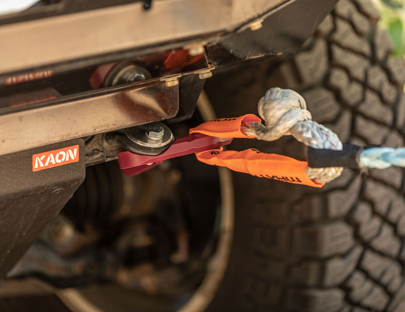 If you've done your homework, you'll know that our recovery point is a little unconventional. Not only does it secure to the standard mounting locations, but it also takes up a third point: the factory tie-down point. This trio gives our point a unique advantage.