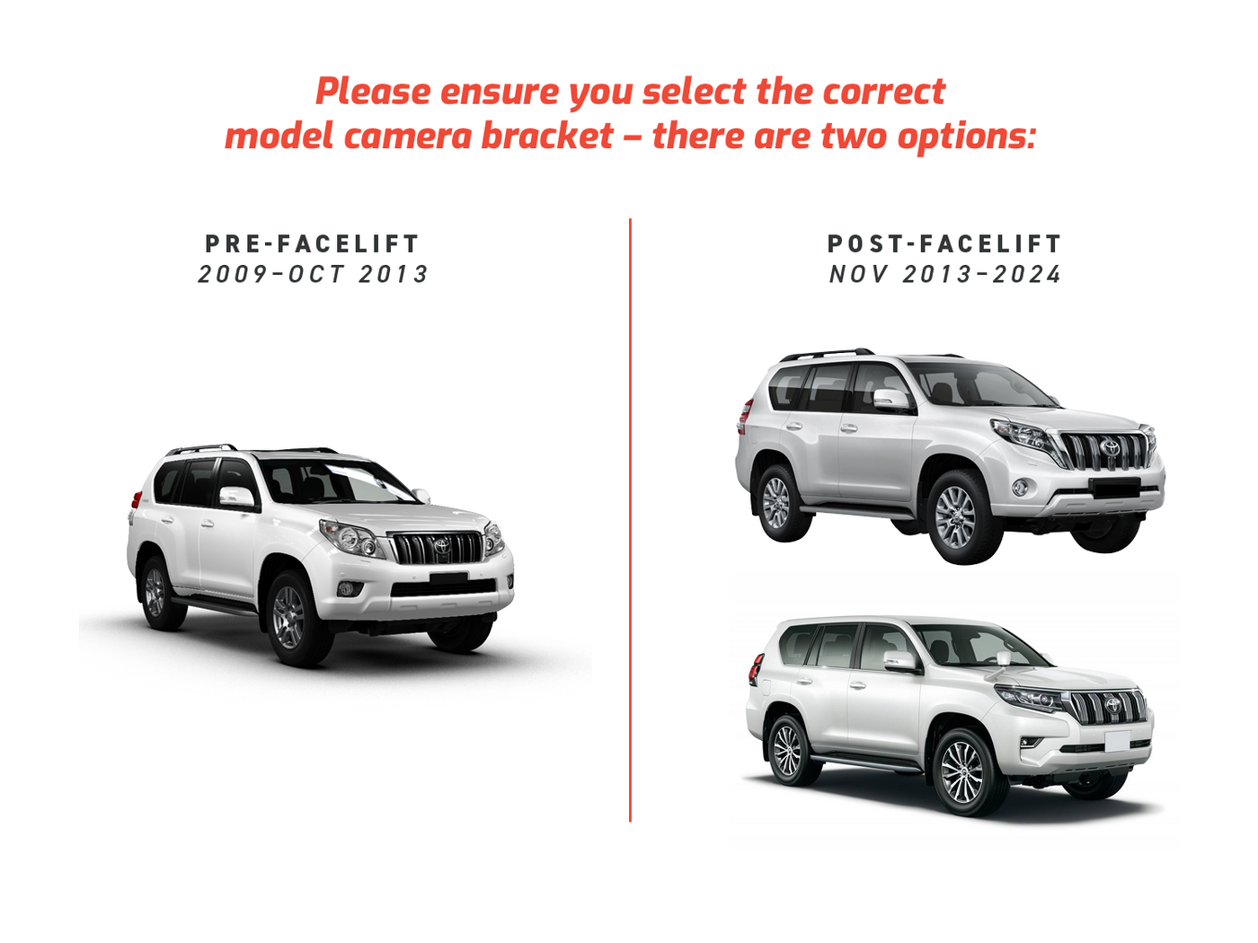 Toyota changed the camera for facelifted models, from Nov 2013 onwards. Depending on which camera your vehicle has, we provide a different mounting bracket.
