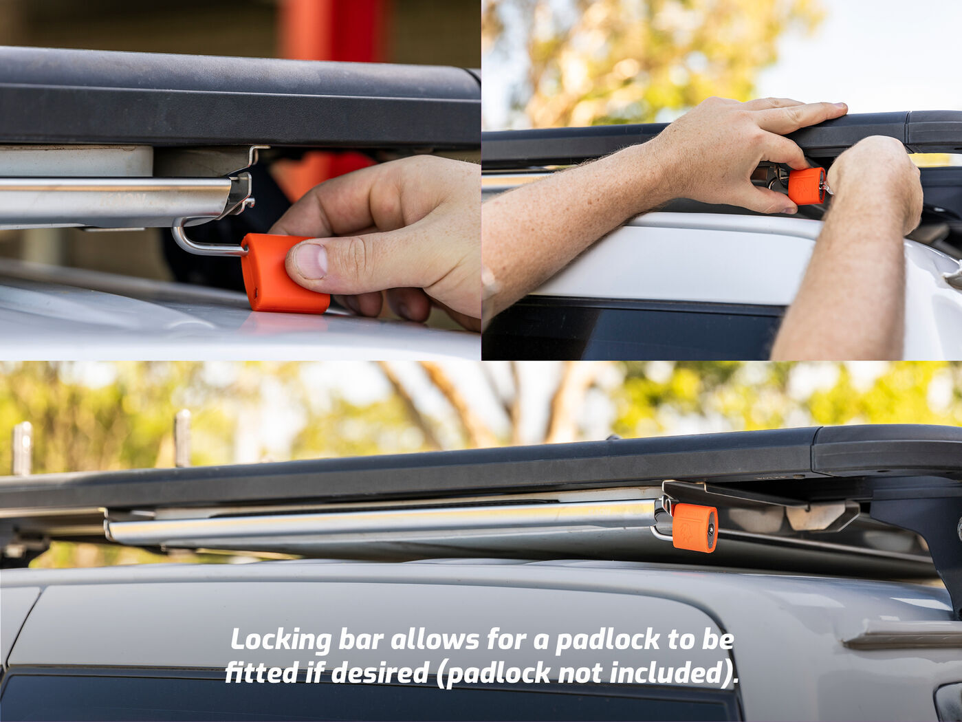50mm clearance is required from the underside of all roof racks to the roof, at the narrowest point.