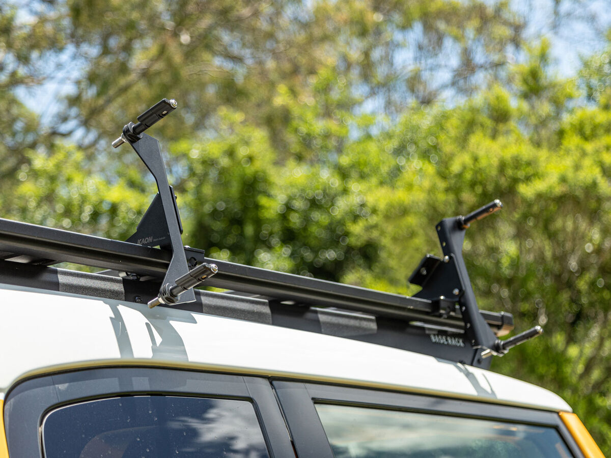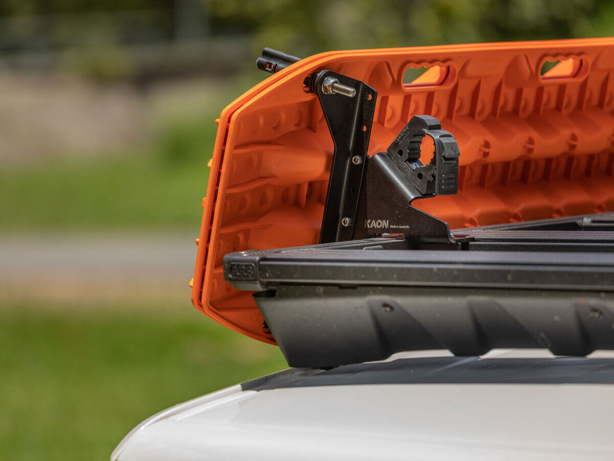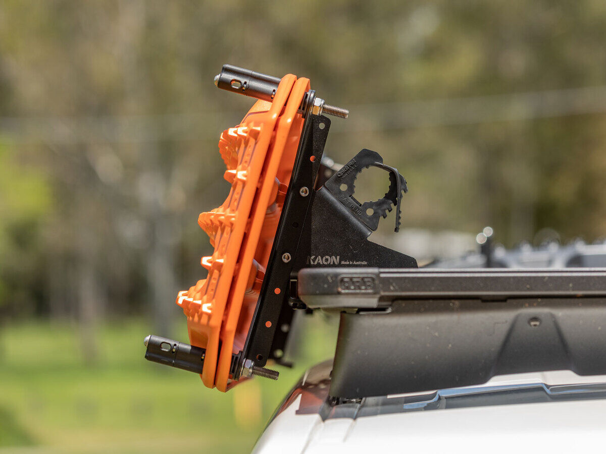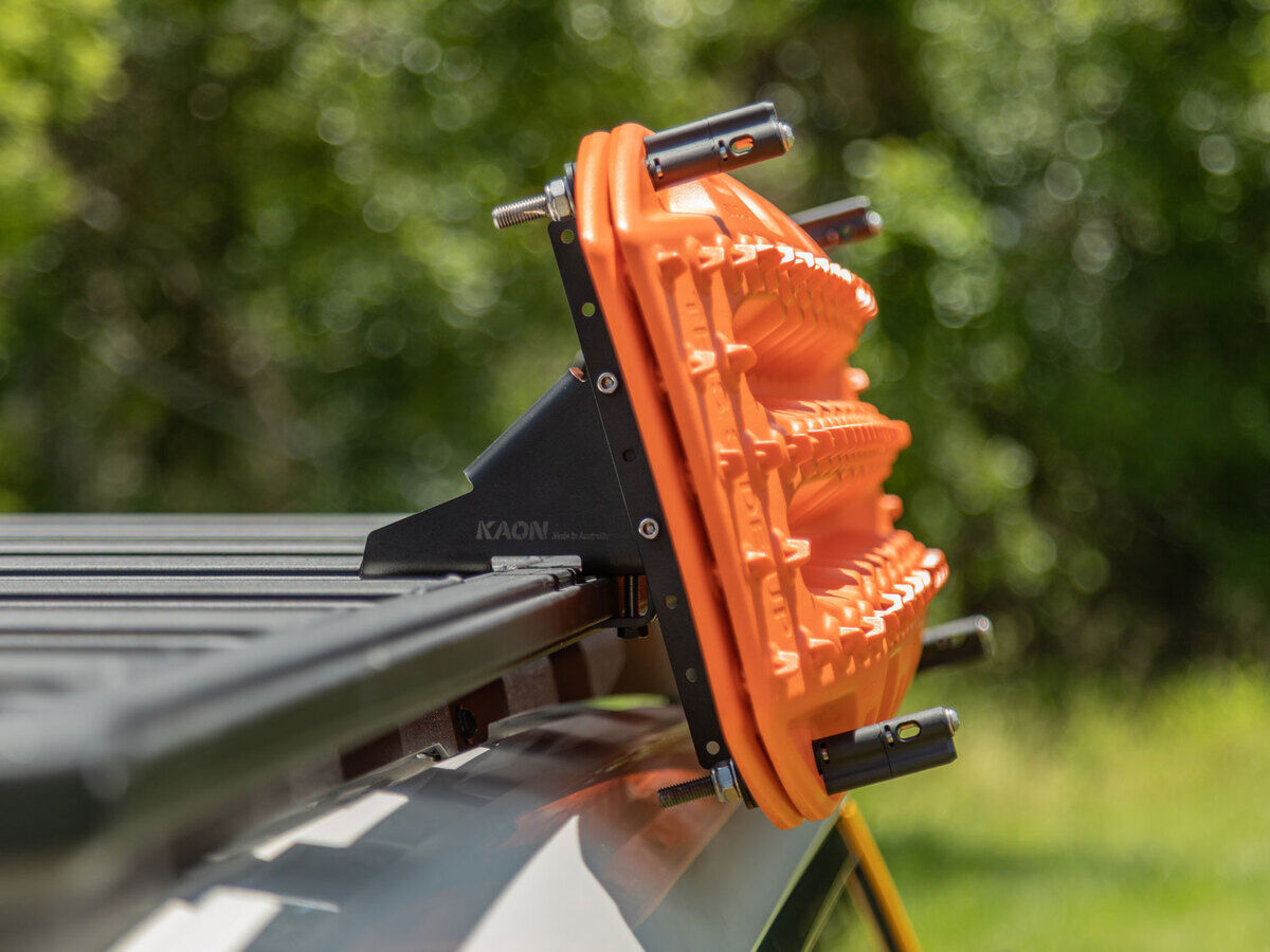 Positioned on the side of your roof rack, these mounting brackets keep your Maxtrax or TRED within easy reach and keep your roof rack free for all your gear.