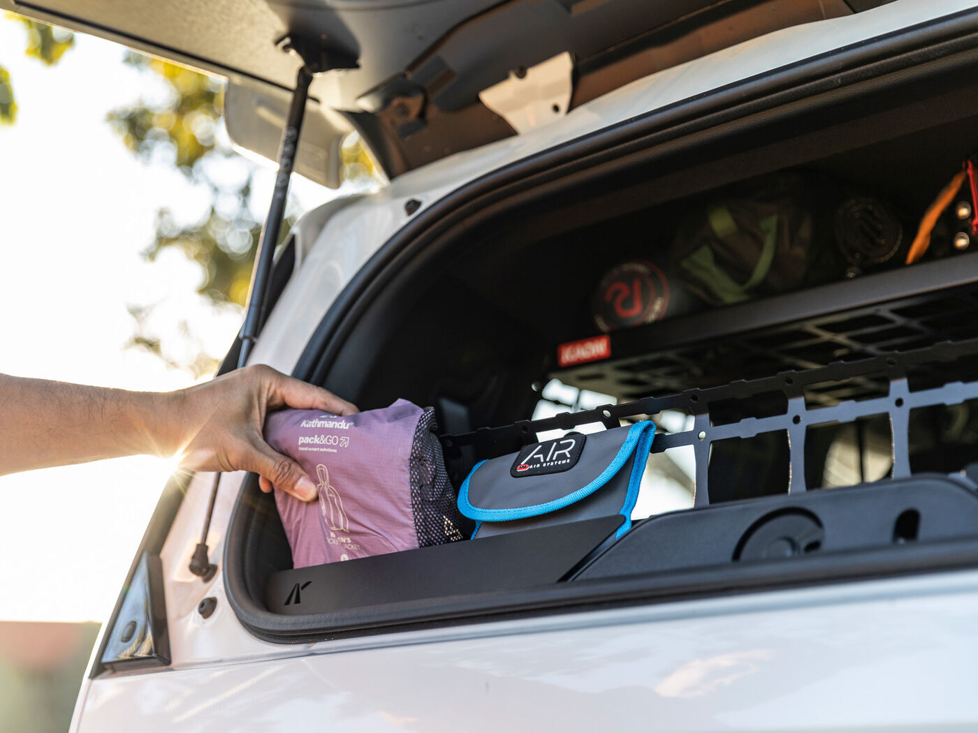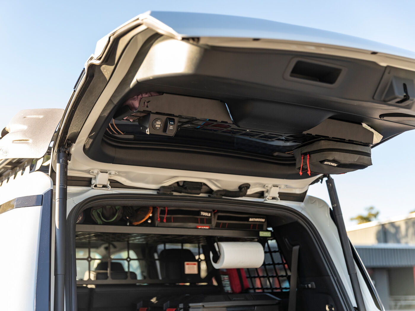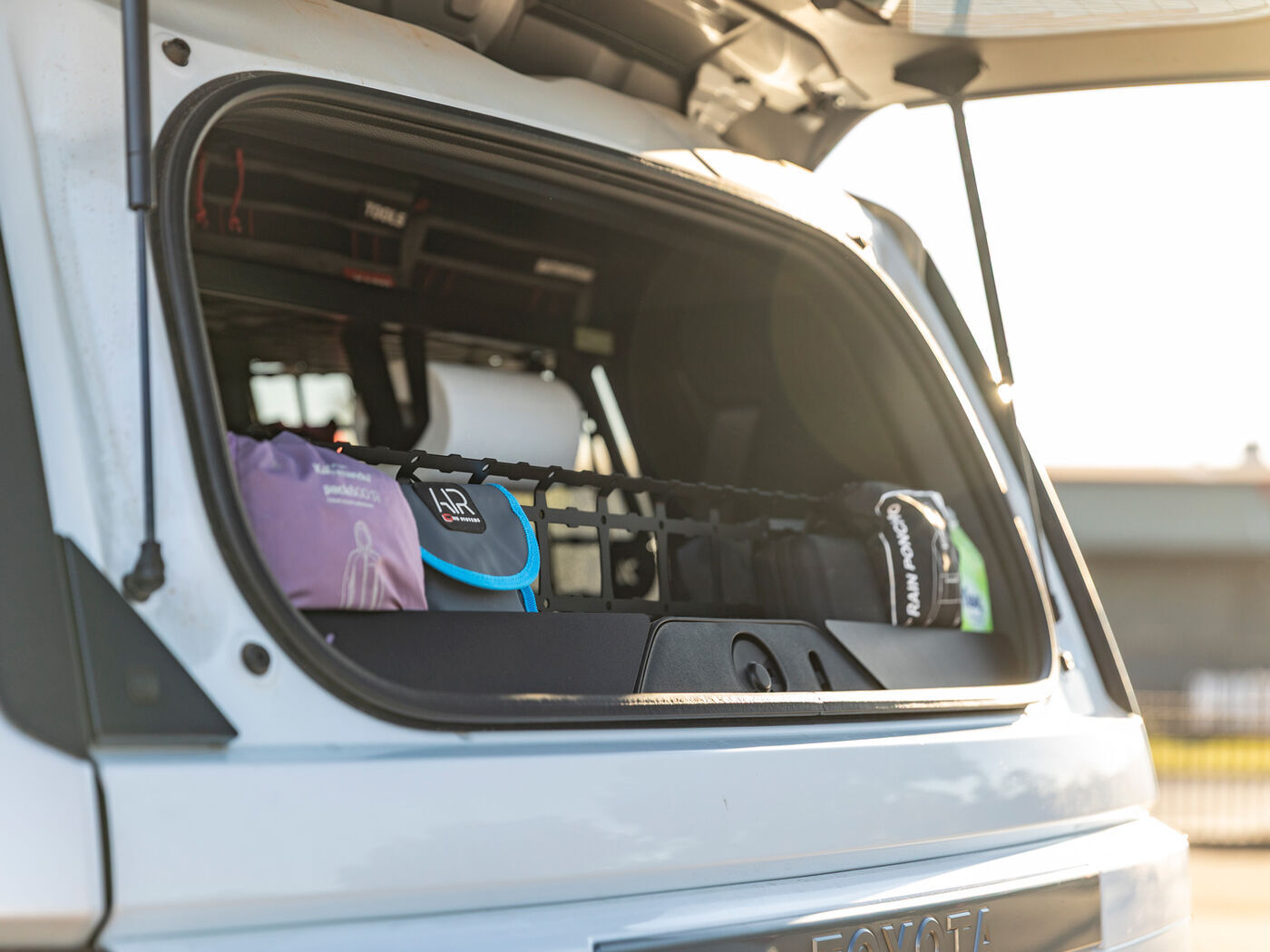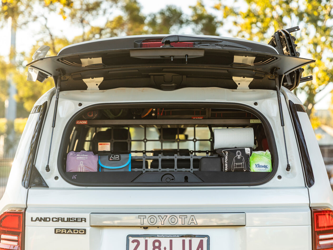 We know that half the problem with life on the road is finding places to store gear that you can access quickly. That's why we've come with a way to make the most of space on your Prado 250's rear door, with a storage solution that's accessible even with the door closed. Best part is: whether you're grabbing gear through the tailgate window or opening the rear door fully upwards, this console's innovative design keeps gear tucked in place and stops it from dropping on your head.