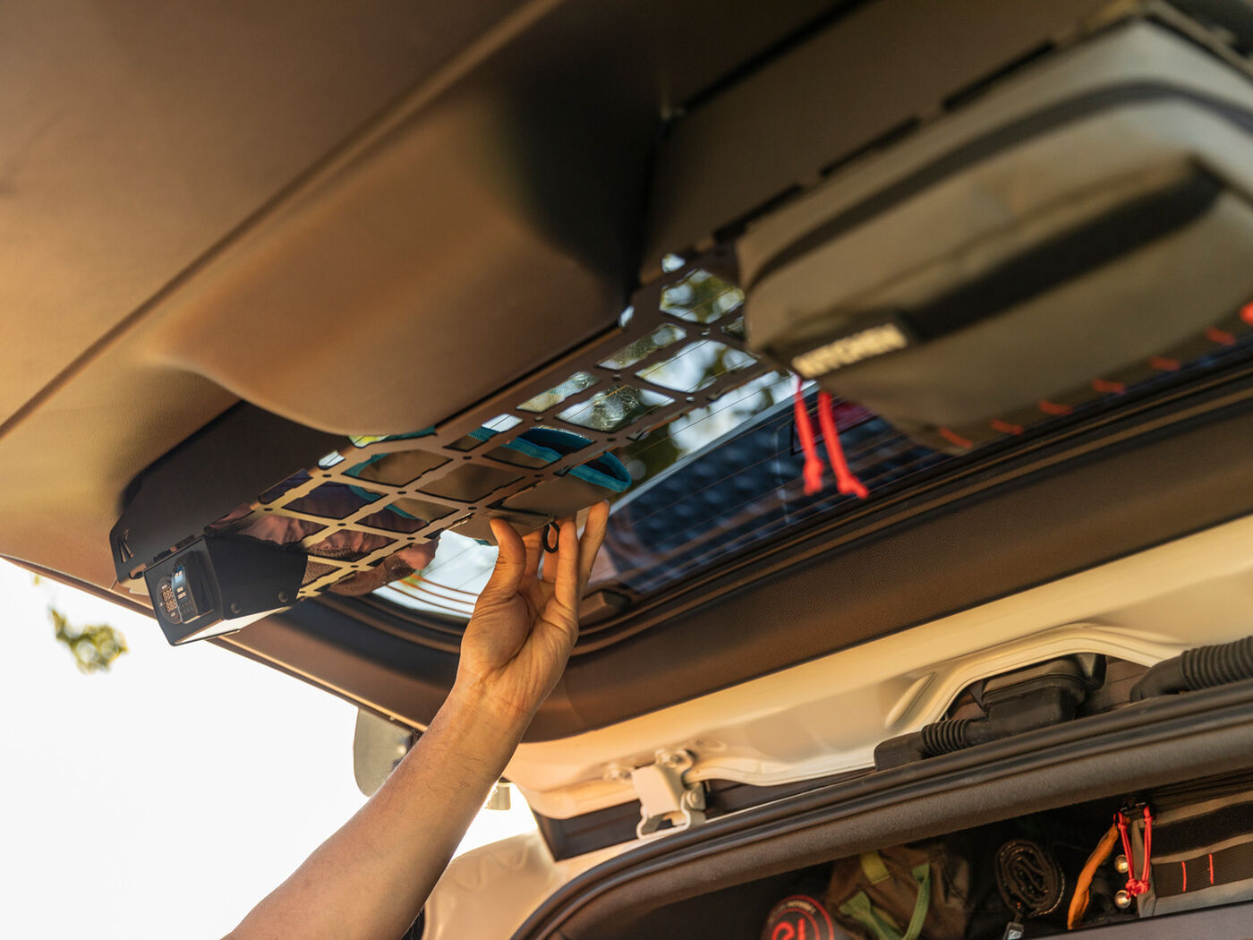 The Tailgate Console is intended to be a storage pocket for soft items only. To prevent damage, we advise against storing hard items in this space.
