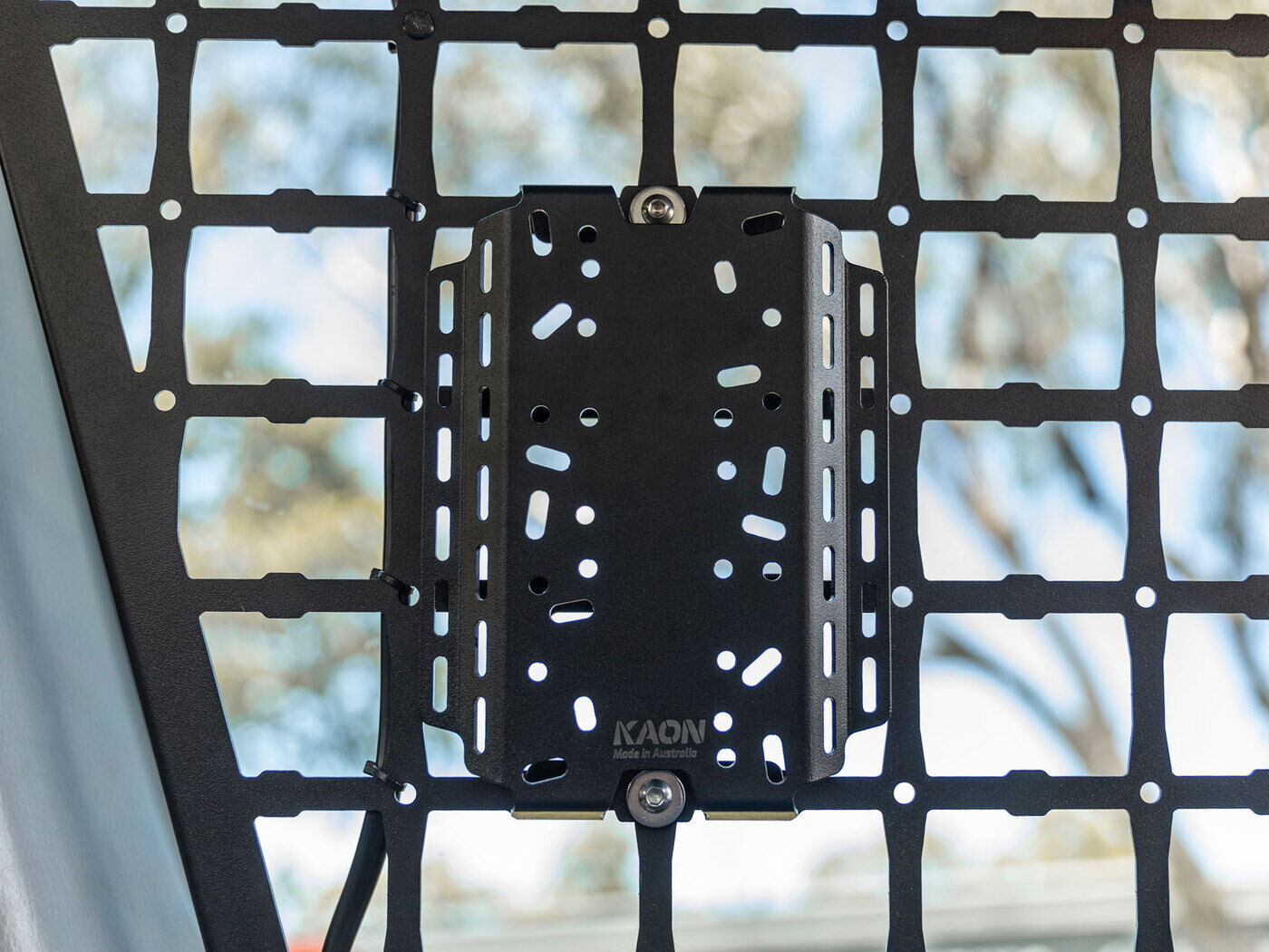 It’s universal design means it’s perfect for a wide variety of applications; secured to your KAON Molles, behind drawers in your 4x4, secured to the headboard of your canopy, or even in your camper or caravan.