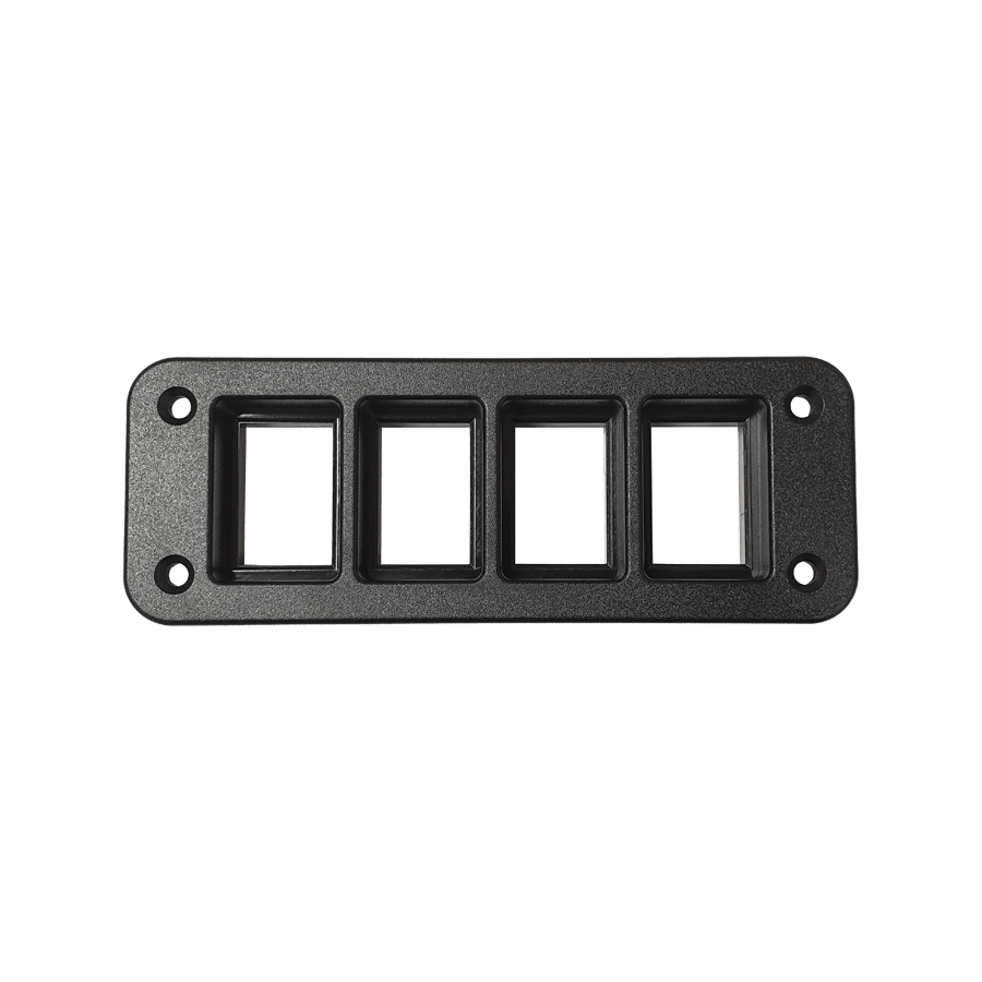 The Lightforce Four-Switch Panel Fascia is easy to install and can accommodate up to four Lightforce standard TY2 style switches or eight switches by using the Lightforce Dual Switch models. All switches are in the one central location, and are suitable for caravans, four-wheel drives, RV’s, boating and trailers. Each switch interlocks into the fascia independently, and once securely fitted, the fascia is designed to eliminate damage during vibration or undulating terrain.
