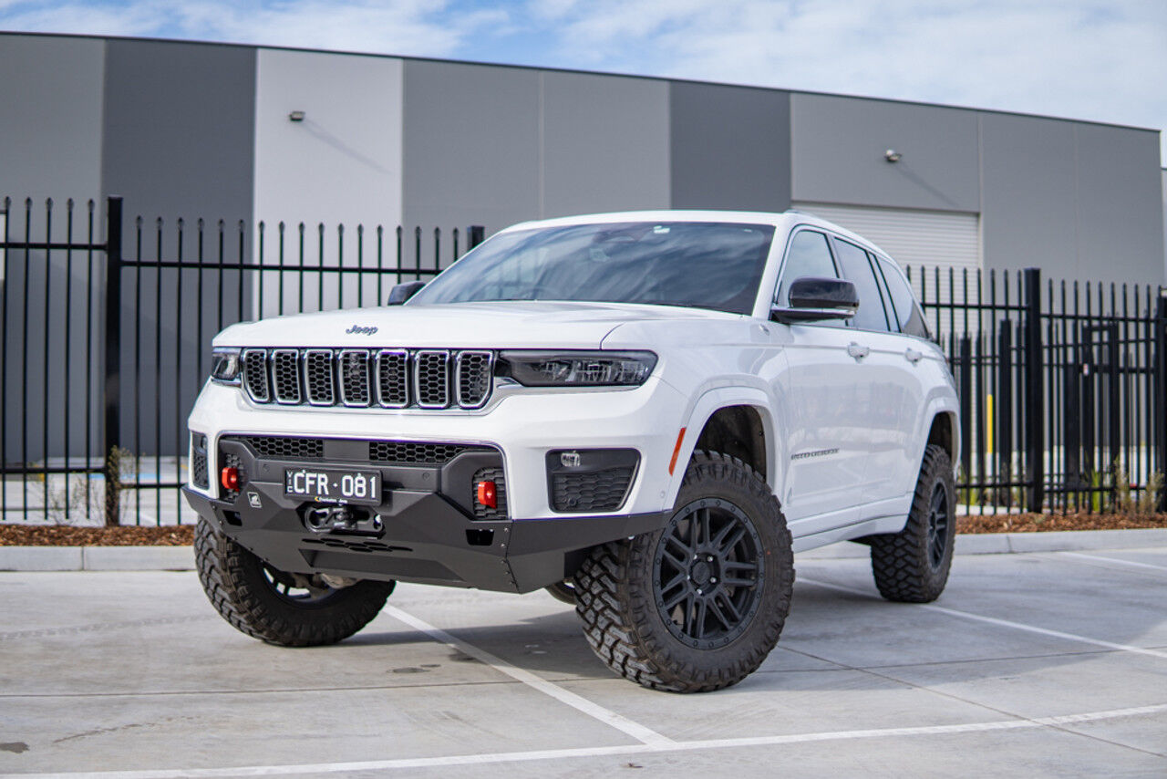 While the Grand Cherokee WL (5 seater) and L (7 Seater) are a good looking rig, they lack some frontal protection and have a vulnerable front end not really that suited for going off road. With no protection you're likely to either scratch, gouge or even rip off your factory bumper. Fear not, Offroad Animal has a super stylish Pre runner style steel front bumper system for your rig. This steel bumper basically acts like a bash plate system while give you tons more clearance which also reduces the risk of front end damage.