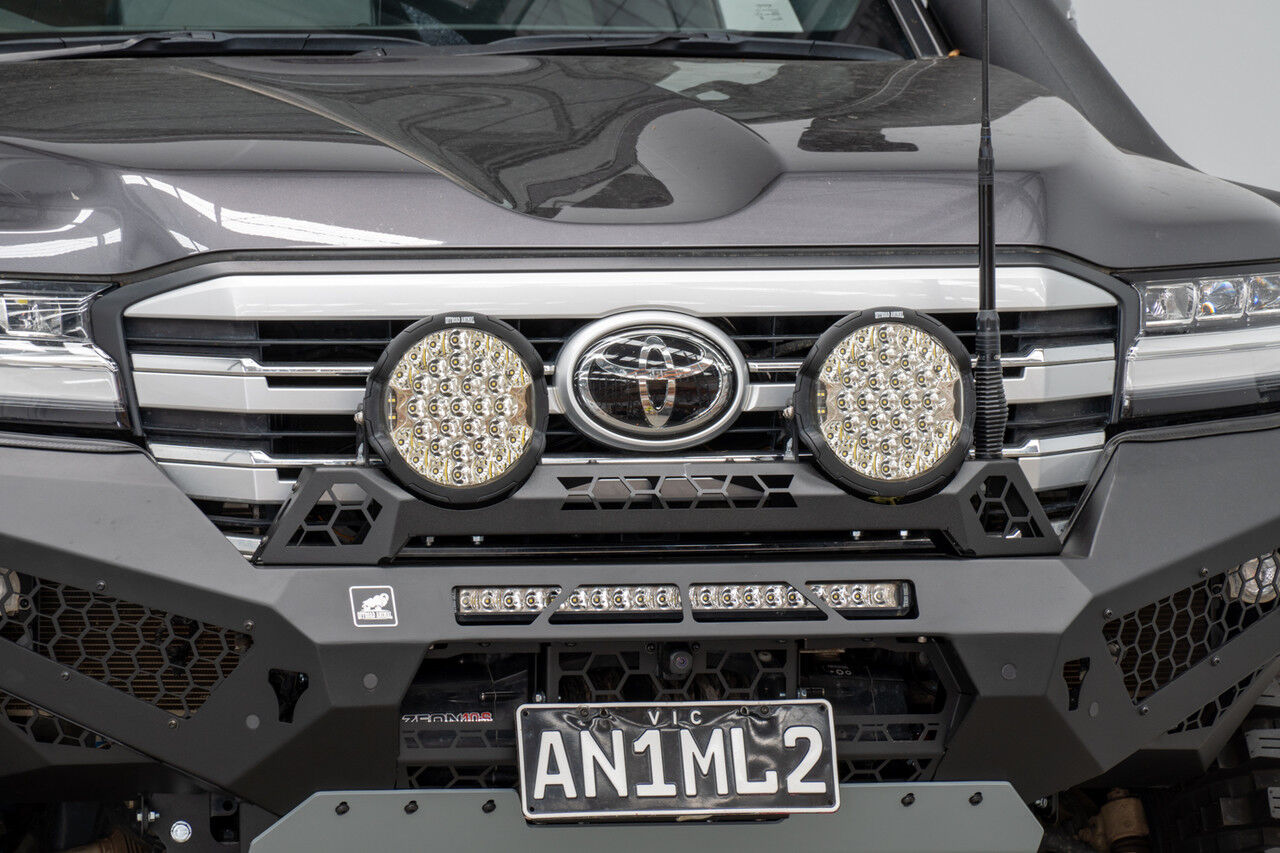 This version houses two Offroad Animal Ass Kicker 9" LED lights and only these lights. This one specifically only suits the Offroad Animal Predator bar for the LC300. This hoop suits all LC300s except GR Sport