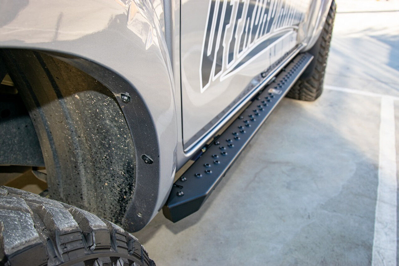 A very innovative design has made these super tough sliders easier to fit than most others. First install the 3 heavy duty steel brackets on chassis, then install our awesome backbone and tread step. The backbone is made from ultra tough 6061 T6 Aluminium extrusion that is designed to be much stronger than any steel section other are using. Being similar in weight and much stronger, it also allows for easy fitment of the steel tread plate step.