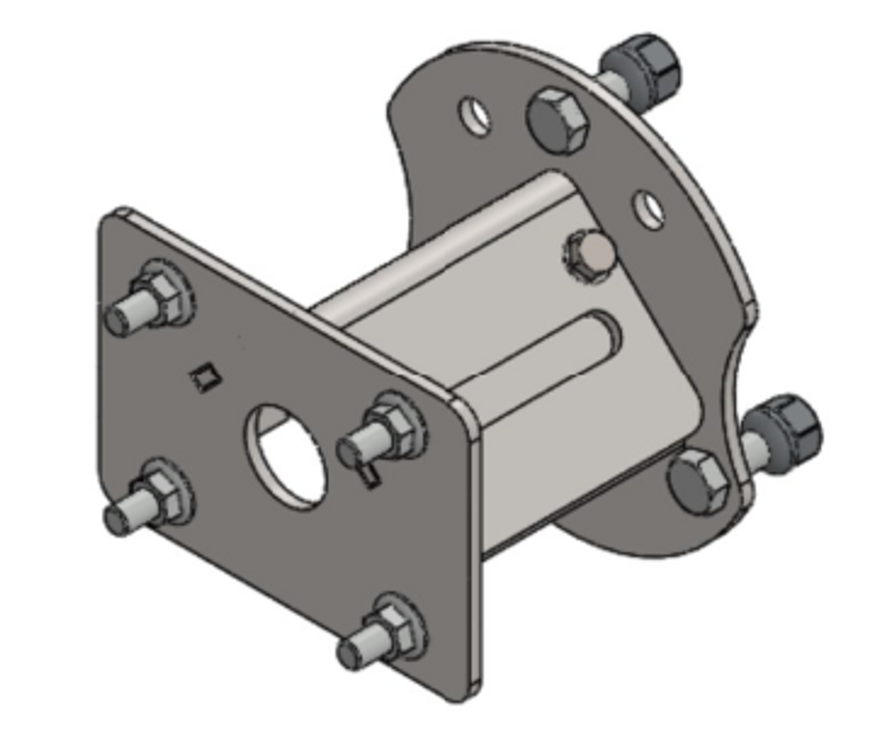 Mounts to flat surface with 4 bolts, with spacing 100mm x 75mm