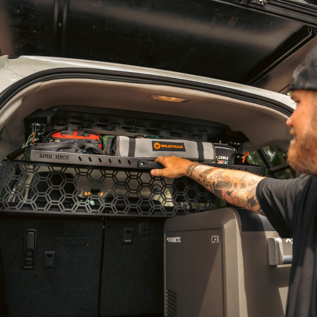 Designed to handle the demands of off-road adventures and long-haul travel, this custom-fit shelf adds a layer of versatility to your LandCruiser’s rear compartment. It blends seamlessly with the vehicle’s interior and complements the tough aesthetic of the 150 Series.