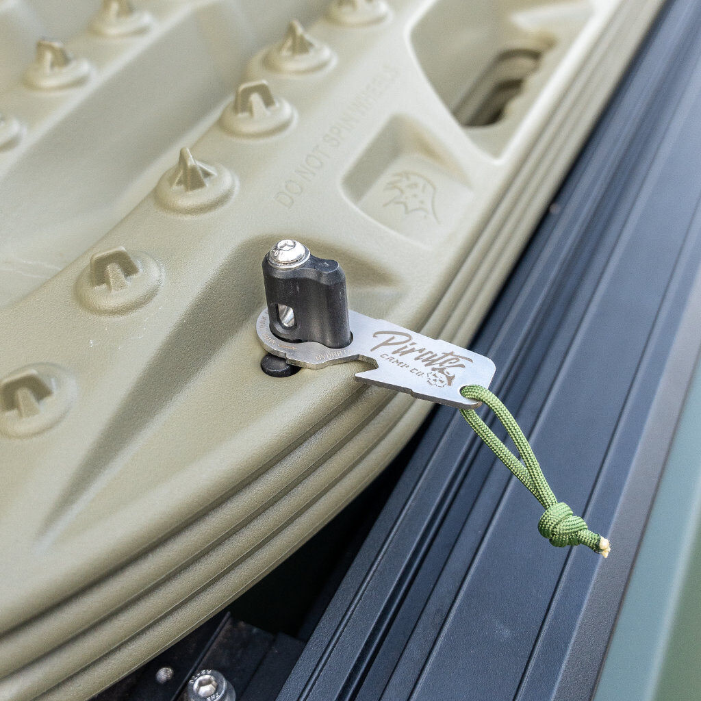 No more fumbling around when the tide’s rolling in or you’re out on the tracks. Pirate Camp Co's Multi-Tool is specifically designed for quick and effortless pin removal, ensuring you can retrieve your Maxtrax's and get back on the road in record time. Its streamlined design means less hassle, more action.