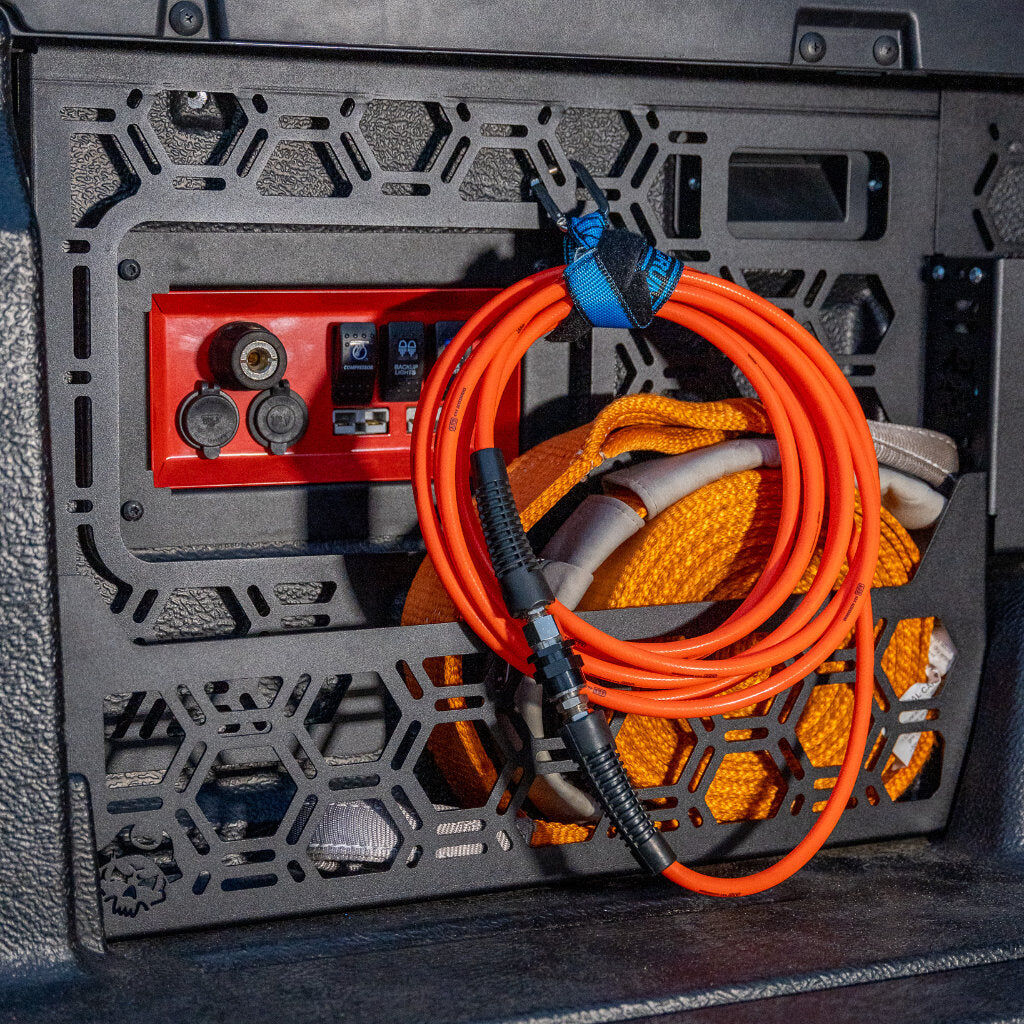 Designed with a unique MOLLE (Modular Lightweight Load-carrying Equipment) panel pattern, this storage solution offers unmatched versatility. Whether it's ratchet straps, recovery gear, work boots, or even dirty clothes, you can easily attach and organize your essentials with MOLLE-compatible accessories.