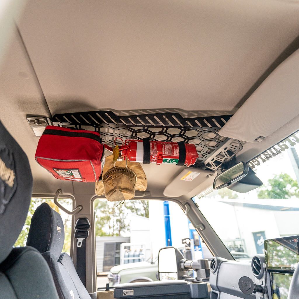 Pirate Camp Co's Molle roof organiser to suit the 2007-2023 79 series dual cab Landcruiser.