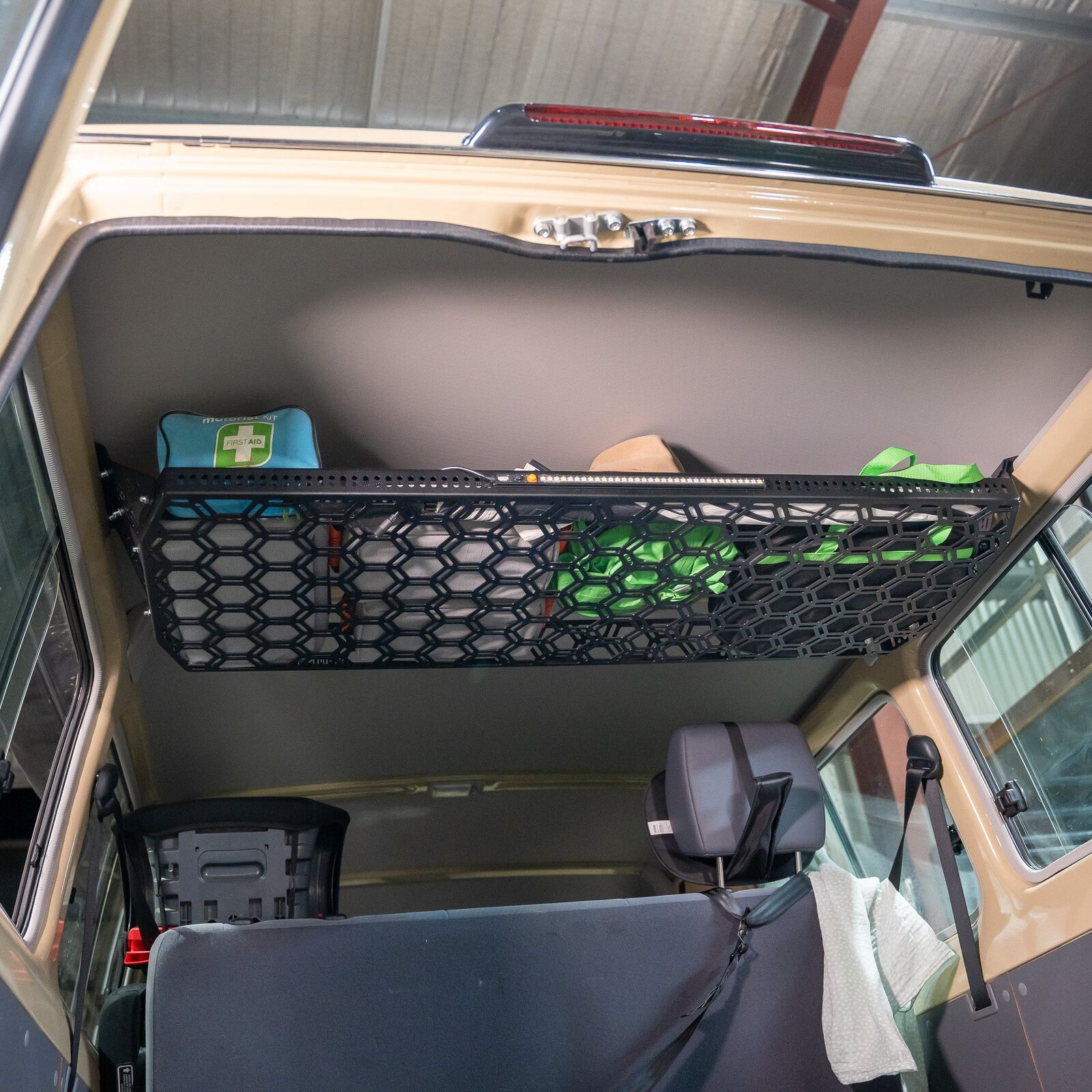 A clutter-busting champion - Pirate Camp Co's Rear Roof Parcel Shelf offers dual storage capabilities, clearing up precious cabin space and keeping your essentials within easy reach on the road.