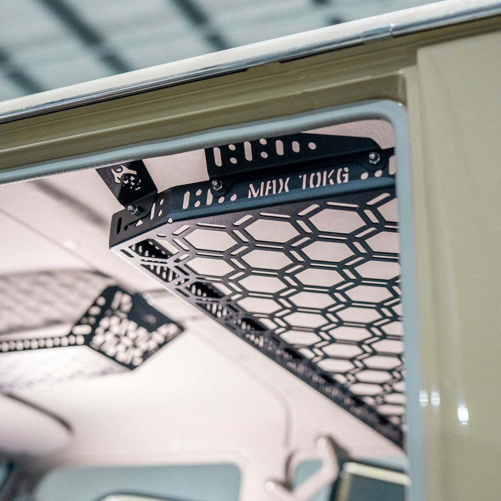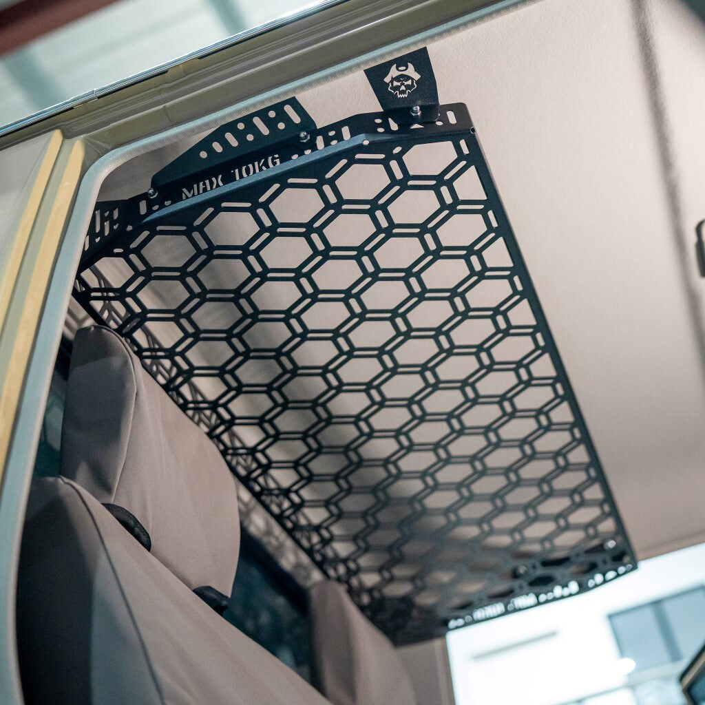A clutter-busting champion - Pirate Camp Co's Rear Roof Parcel Shelf offers dual storage capabilities, clearing up precious cabin space and keeping your essentials within easy reach on the road.