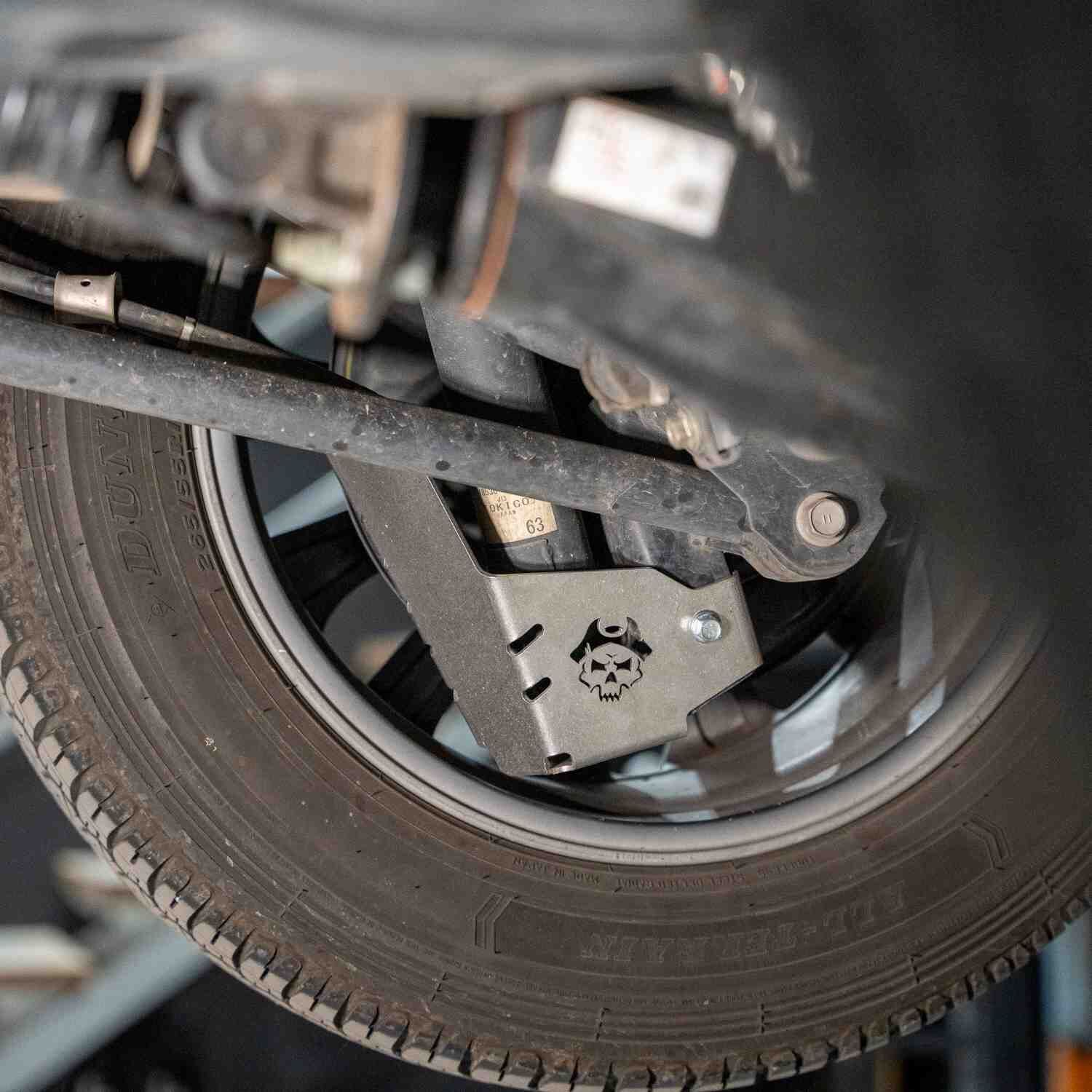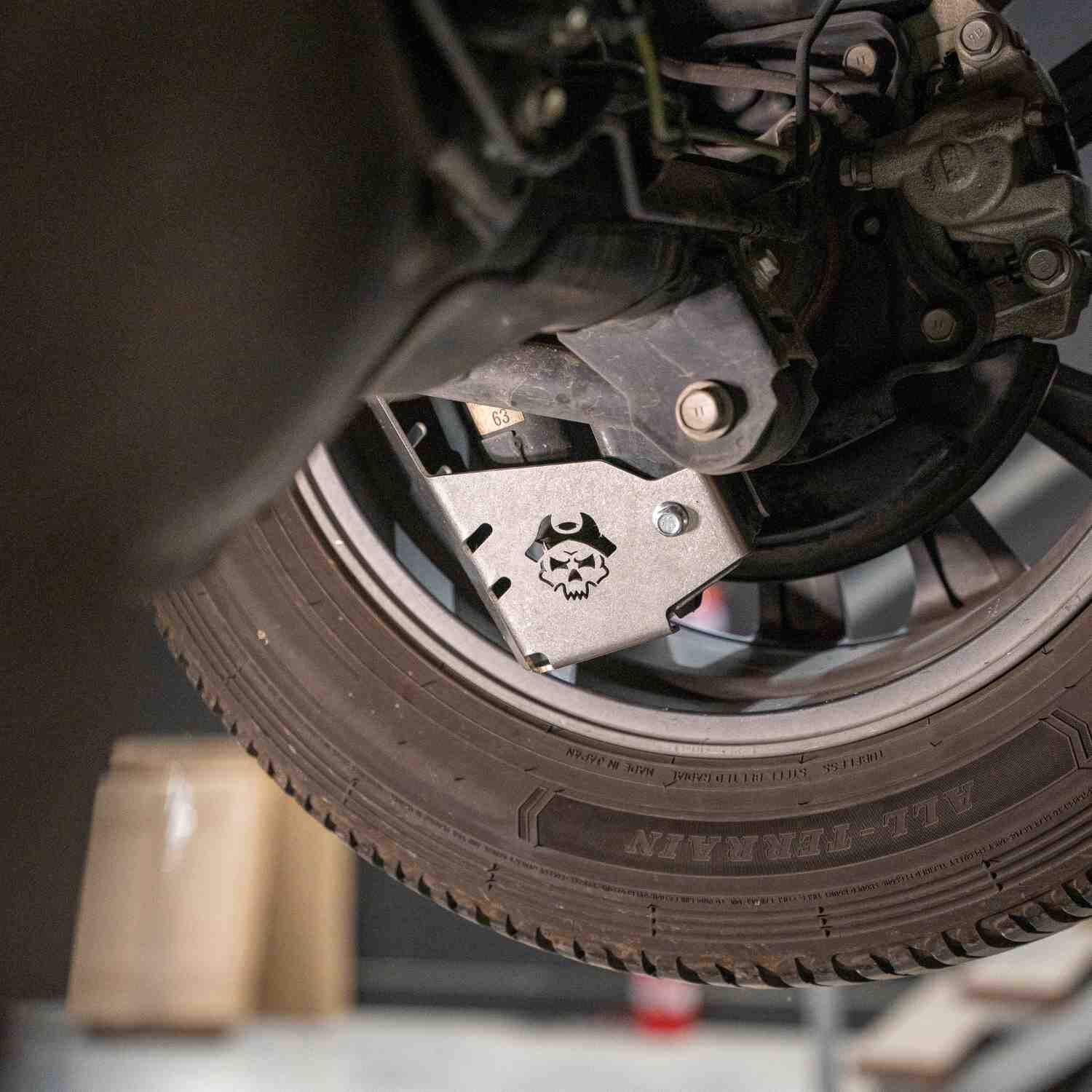 Designed to protect your shock absorbers from debris strikes and unexpected impacts Pirate Camp Co's guards are manufactured from heavy duty 3mm stainless steel with venting to allow trapped debris to self clear and geometry to suit even the most extreme lifts and articulation; their rear shock guards will add additional protection over aftermarket plastic guards and house up to a 90mm shock absorber body.