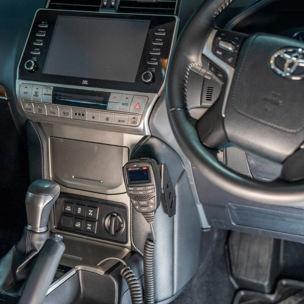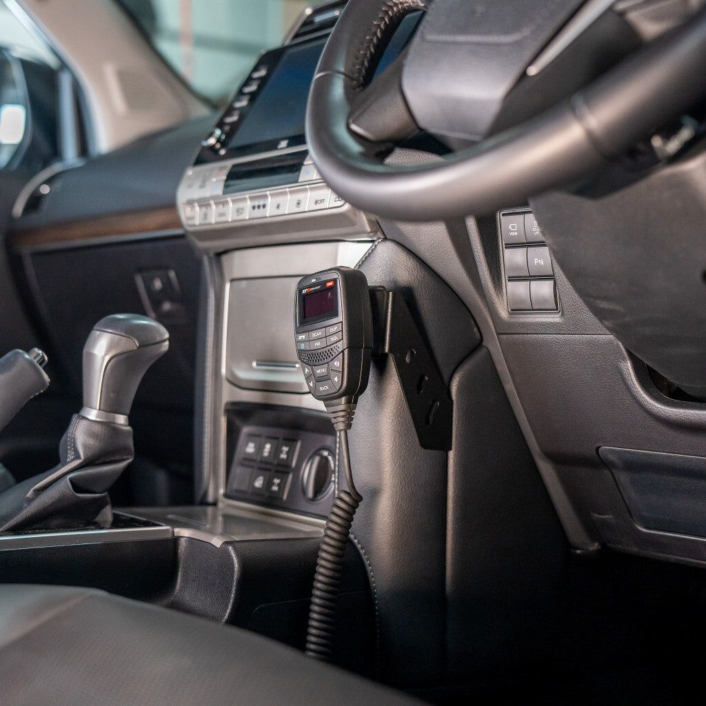 Pirate Camp Co's UHF Handpiece Mount will keep your handpiece secure and within reach, and our compact design ensures it won't get in the way. Plus, it mounts at the perfect angle toward the driver for optimal viewing.