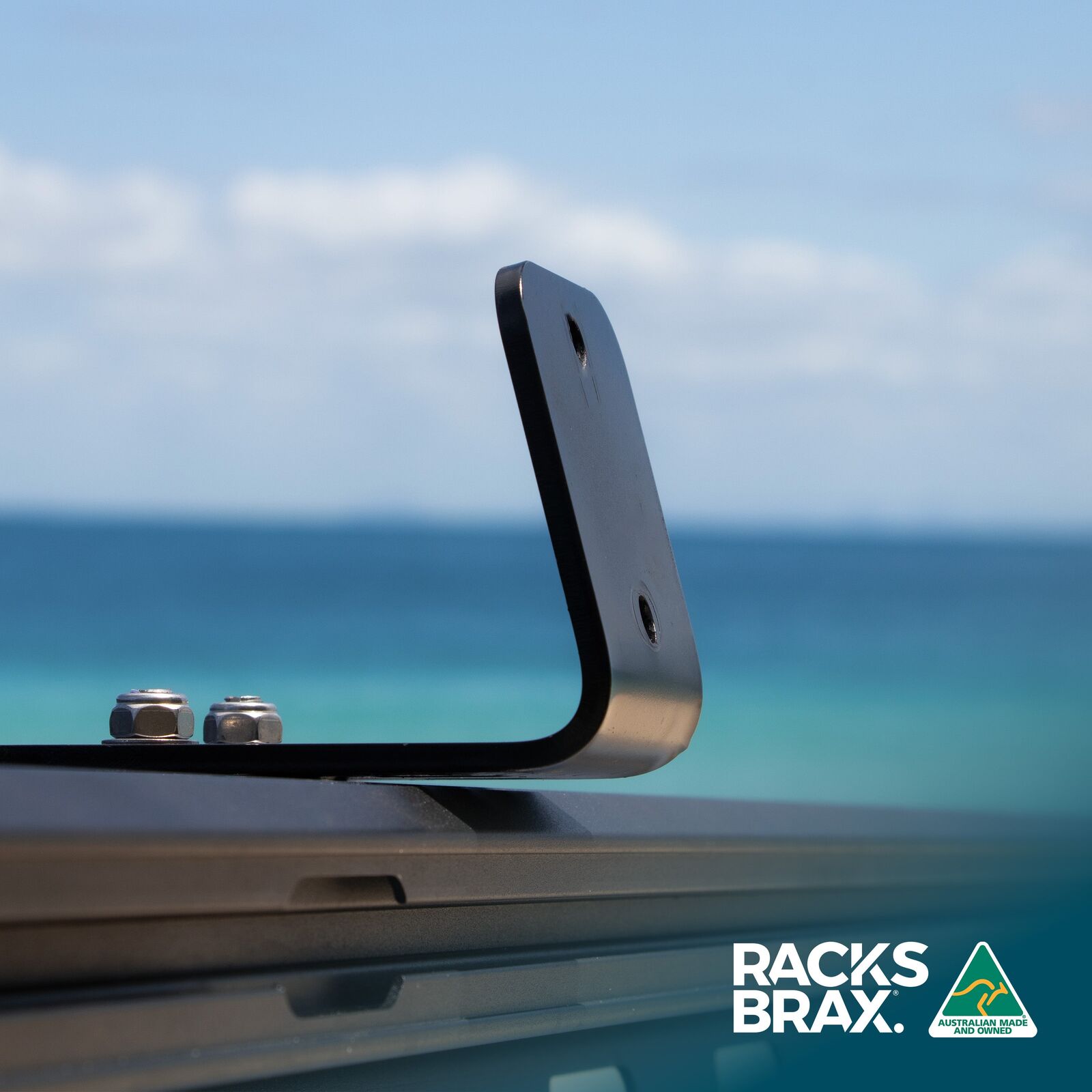 The bracket foot is attached to roof rack channels/bars with fasteners suited to the specific roof rack design. Fasteners are NOT included for attachment of the bracket to the roof rack.