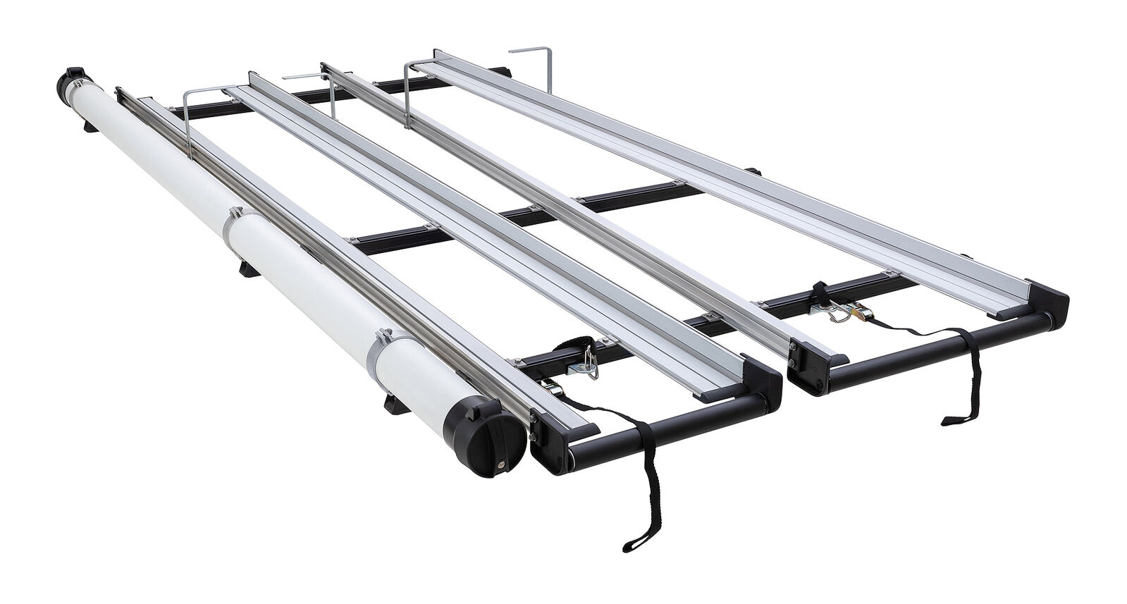Ladder hoops and ladder straps are provided to ensure that the ladders are stable and well fastened when in transport.