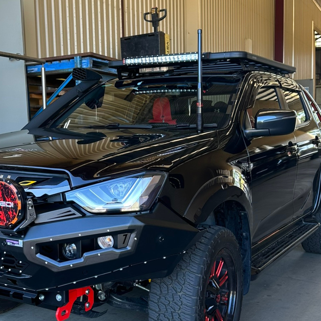 Made in Australia from 4mm thick stainless steel, the mount delivers superior strength, durability, and corrosion resistance — built to withstand the harshest off-road conditions. It positions your antenna in a safe and practical location, clear of bonnet and wiper movement, while maintaining an uncluttered appearance.
