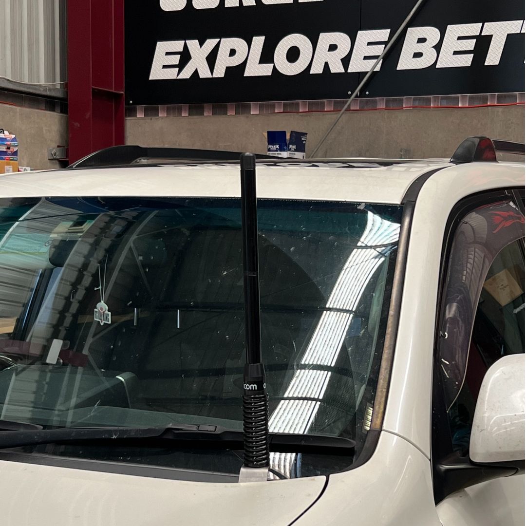 Made in Australia from 4mm thick stainless steel, the mount delivers superior strength, durability, and corrosion resistance — built to withstand the harshest off-road conditions. It positions your antenna in a safe and practical location, clear of bonnet and wiper movement, while maintaining an uncluttered appearance.