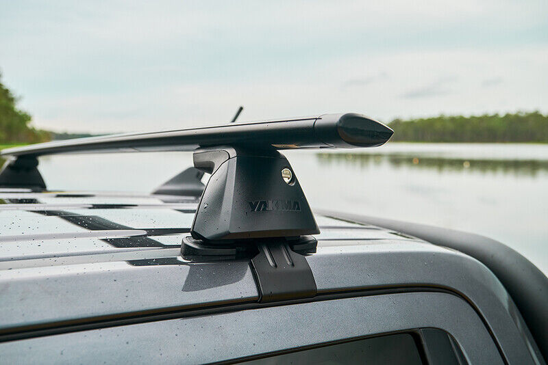 The Yakima JetStream Through Bar Roof Rack extends beyond the legs, providing extra width, which is ideal for mounting an awning or loading a kayak onto the roof. The JetFlow design is exceptionally aerodynamic, incredibly strong, lightweight, and really quiet on the move. The root of a modern rack system, it carries a lot and looks good doing it.