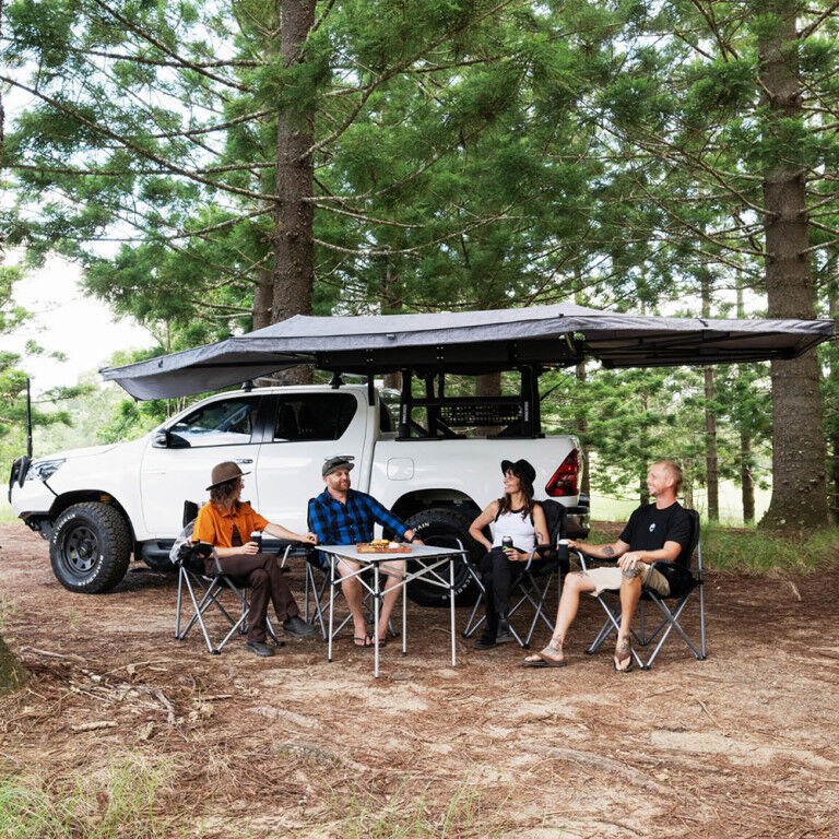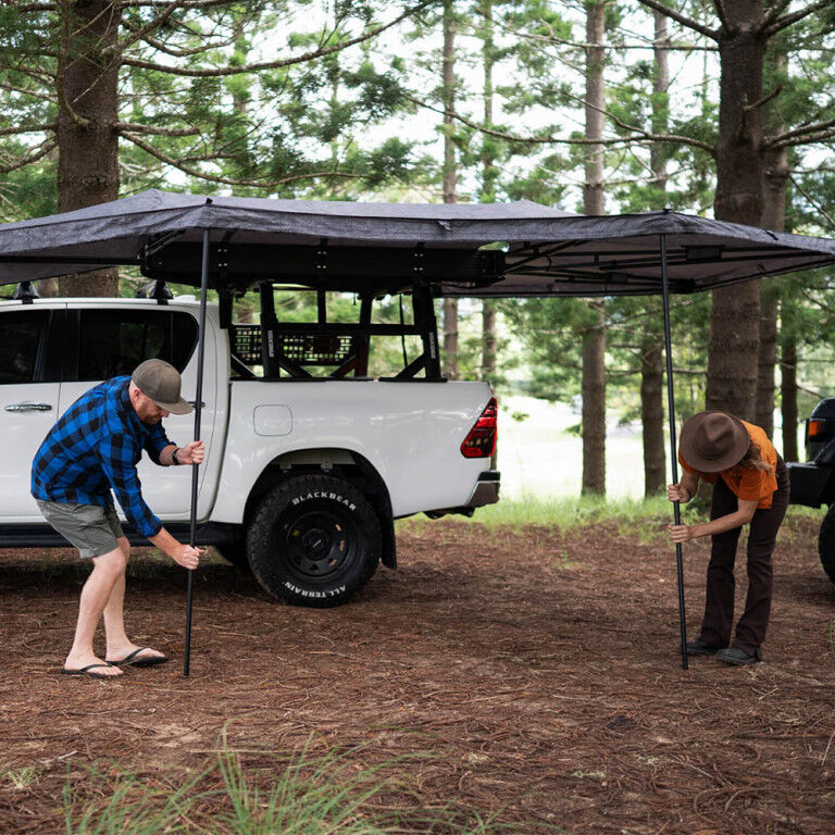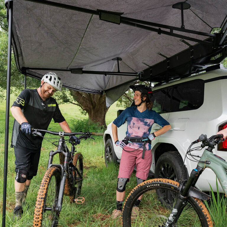 Taking It Easy just got easier with the OverNOut 270 XL. Built with strength and ease in mind, this freestanding beauty protects you from both rain and sun with 12.26 sqm of coverage. Installation is quick and easy with integrated T-slot attachments to connect to your favorite T-slot crossbar or platform. So, whether you’re looking to chill at the campsite or be the center of attention at the next outdoor event, the OverNOut 270 XL has got you covered—literally.